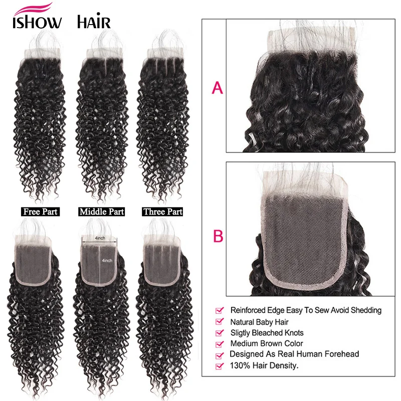 Курчавые Волнистые Волосы Ishow, 3 пучка с закрытыми волосами