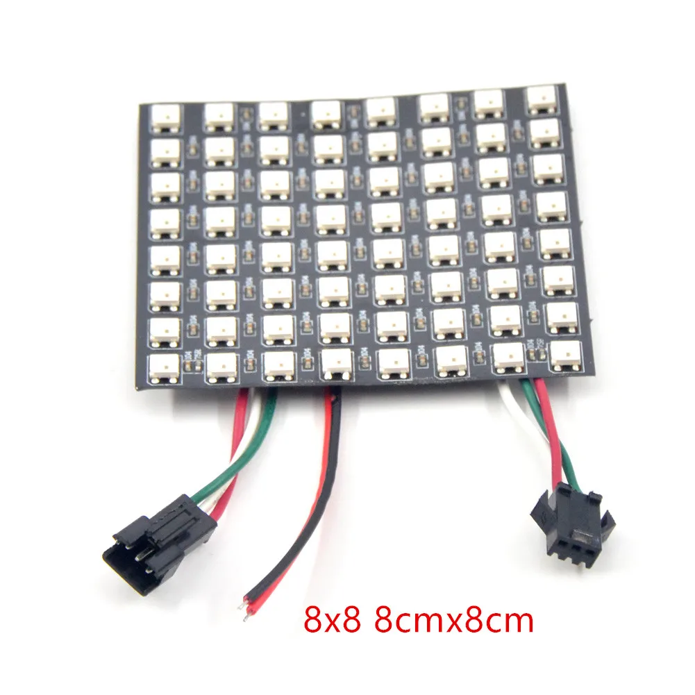 Очень умный. Каждый светодиодный индивидуально адресуемый. Вы можете установить каждый светодиодный индикатор, как хотите прокручивать сообщения или рисовать маленькие изображения.Широкая совместимость. Отлично работает с Arduino, Raspberry Pi, FastLED library, Adafruit NeoPixel Library, Rainbowduino, SP103E, SP105E, K1000C,T1000S и др.Цепная и гибкая конструкция. Вы можете расширить панель, подключив их один за другим с помощью WS2812B 3pin JST WS2815 4pin JST коннекторов. Гибкий FPCB может быть мягко Согнут и изогнут вокруг поверхностей.Широкое применение: он может быть использован для изготовления СВЕТОДИОДНЫХ экранов, светодиодных стенок, рекламных досок и широко применяется для отелей, КТВ, баров, наружных рекламных знаков, рождественских или свадебных Вечерние Декорации и т. д.