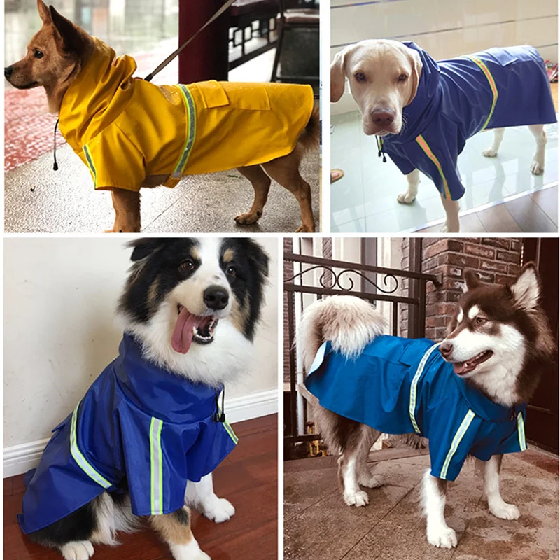 Водонепроницаемые собачьи плащи, светоотражающее пальто с капюшоном для домашних животных, куртка, одежда для средних и больших собак, спортивная одежда для Лабрадора, S-5XL, 2 цвета