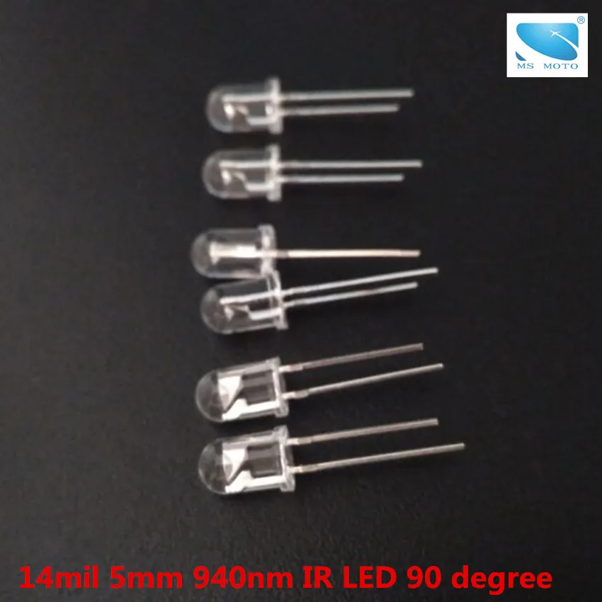 Невидимый диод 20 шт.лот, 5 мм, 14 мил, инфракрасный ИК-светодиод, 940 нм, 90 градусов, сквозное отверстие, светодиодные диоды для пульта дистанционного управления