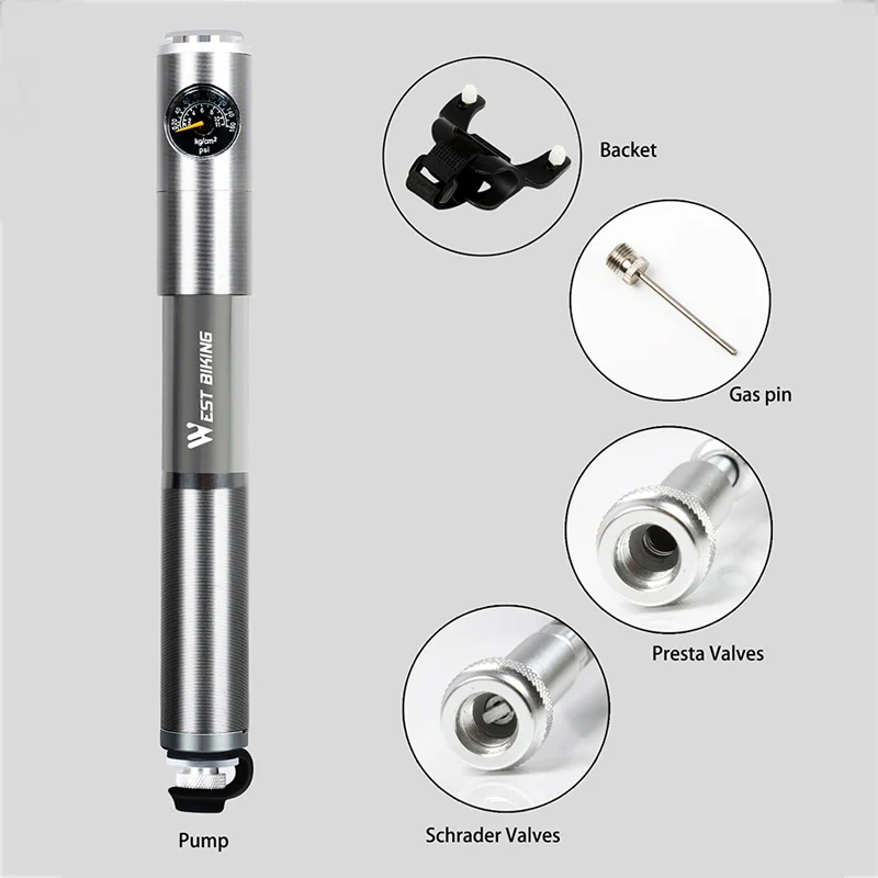 WEST BIKING мини велосипедный ручной насос с манометром 160 PSI алюминиевый сплав воздушный насос для шин Presta Schrader Клапан велосипедный насос