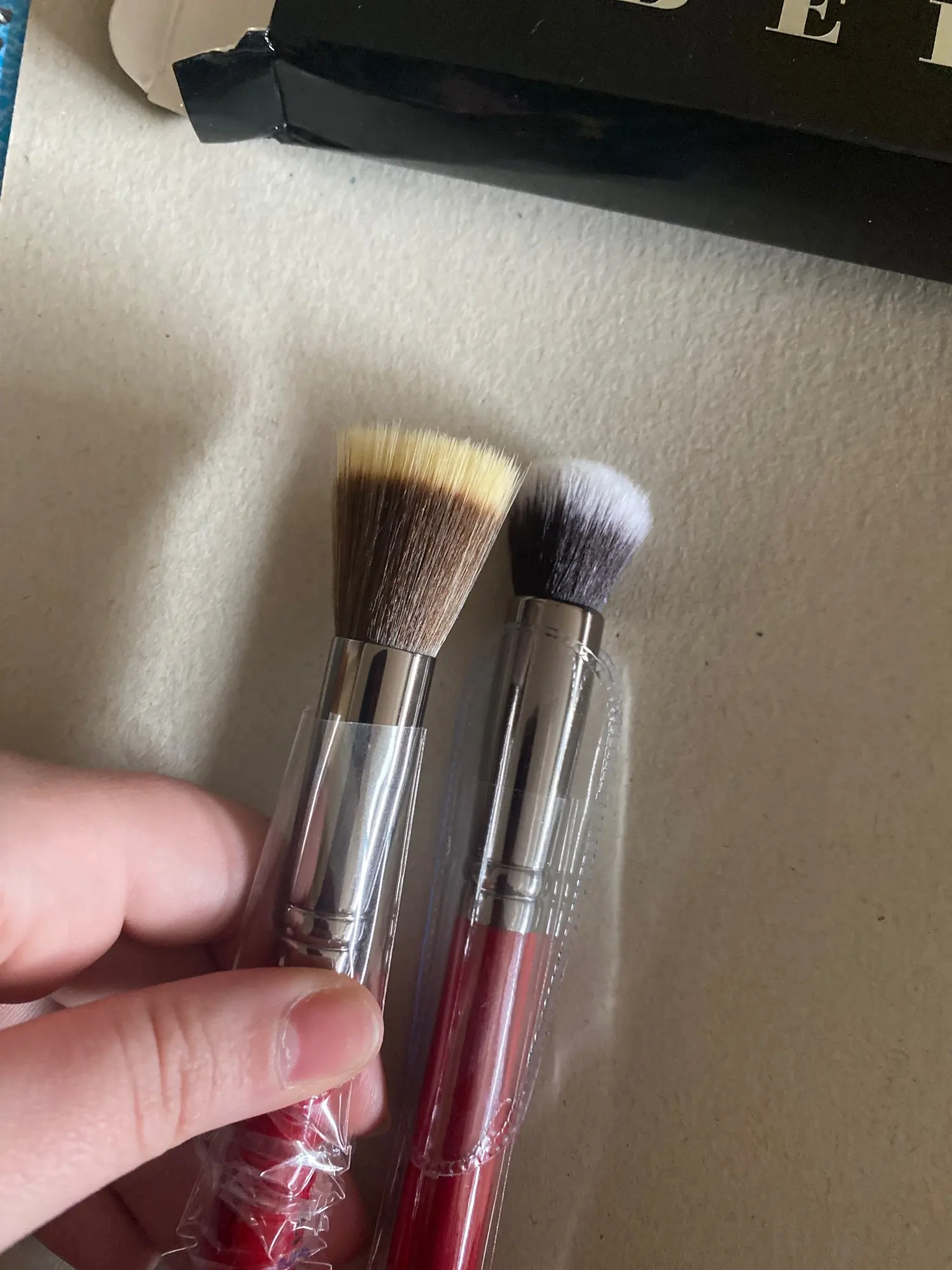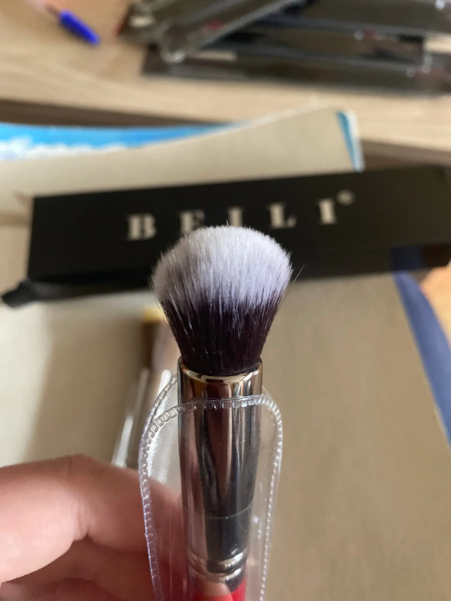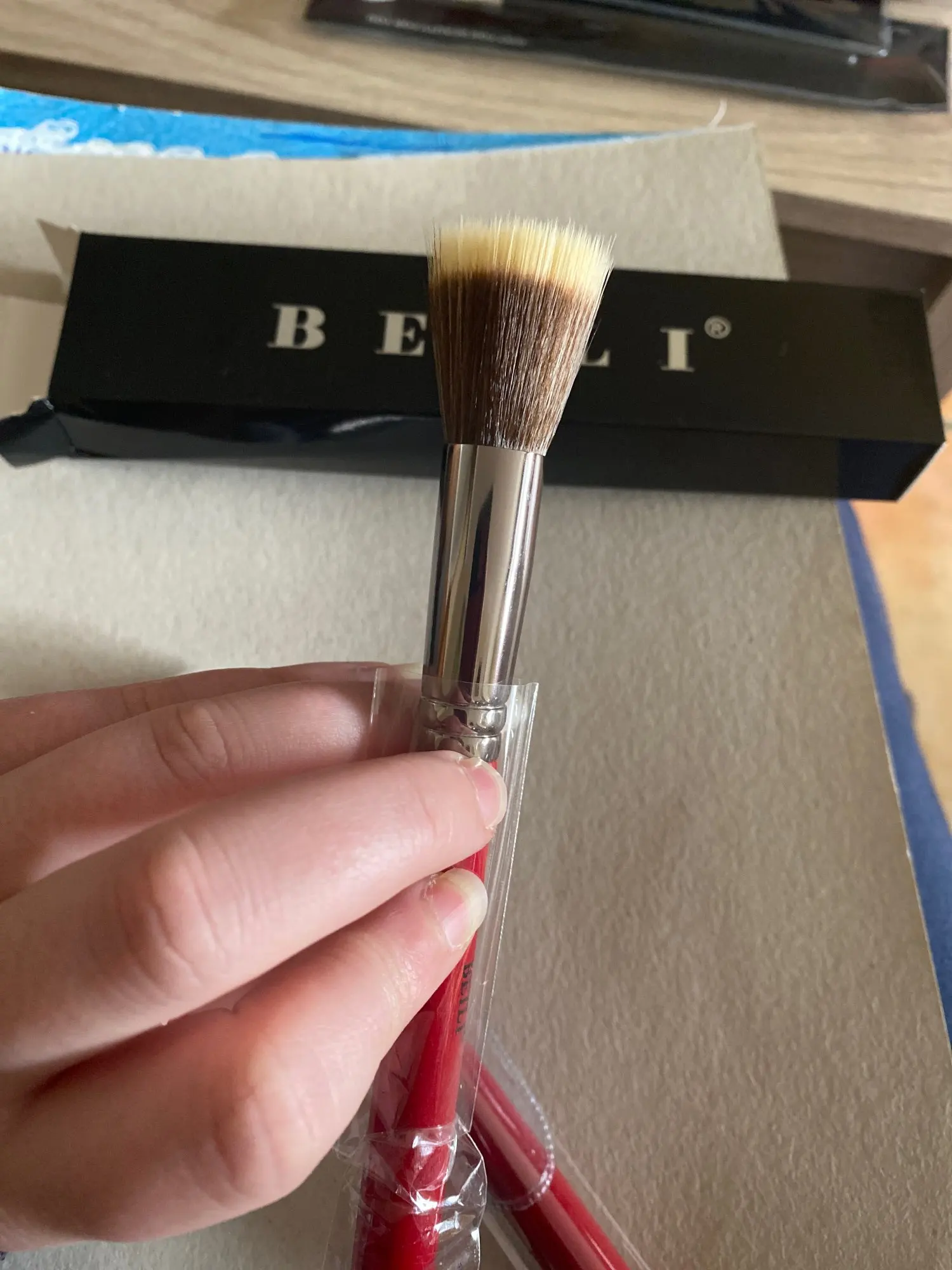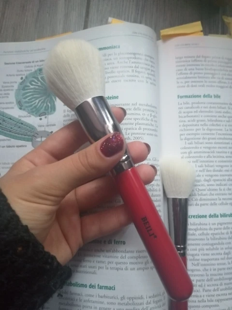 кисть плотная, использую для тона, румян. очень понравилась. ничего не торчит, не колется.