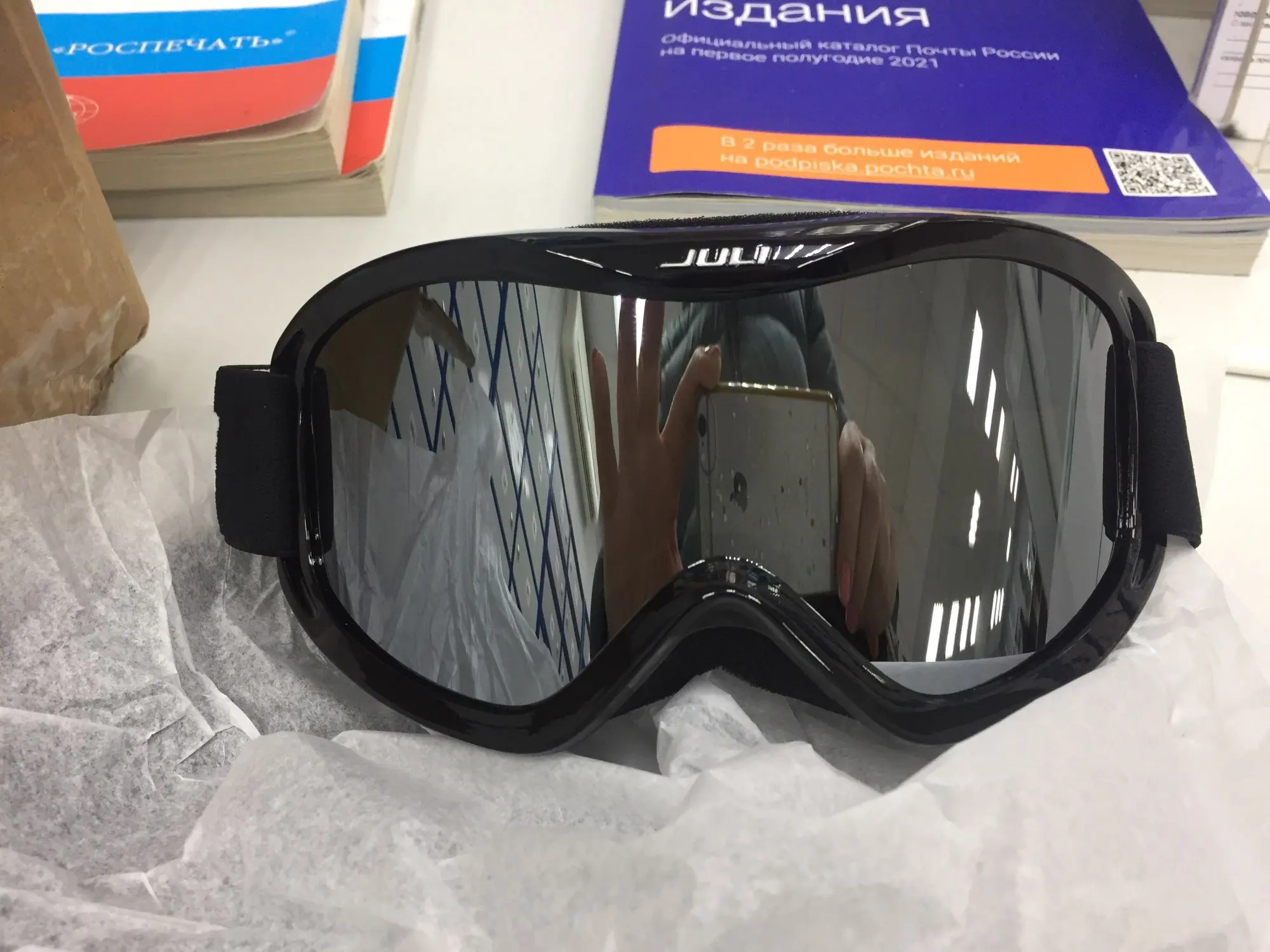 Очки действительно не запотевают, только одно но, простые очки для зрения и противосолнечные желтые очки в эти очки входят плохо, вместе их использовать не комфортно, давят на переносицу. Поэтому только отдельно. Сегодня катались на снегоходе в этих очках, просто здорово! Посылка в ХМАО дошла за две недели.