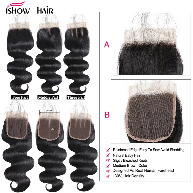 Индийские волнистые волосы Ishow, 3 пряди с застежкой, пряди ные волосы, кружевная застежка с детскими волосами, волнистые волосы без повреждений