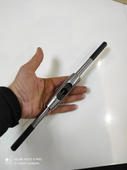 Реально добротный метчикодержатель, великолепное схождение зажимных губок, промасленная конструкция, дополнительно упакован в пакет. Единственное отличие от картинки - нет отверстия на одной из ручек, но не критично. Доставка около трёх недель.