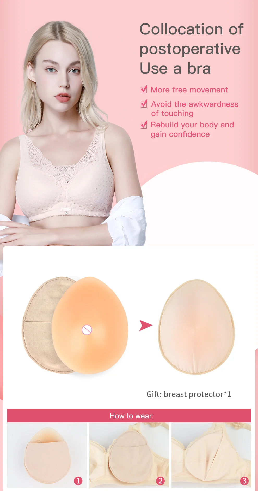 Очень хорошо прилегает к груди и работает с бюстгальтером разных размеров. И качество очень хорошее.
