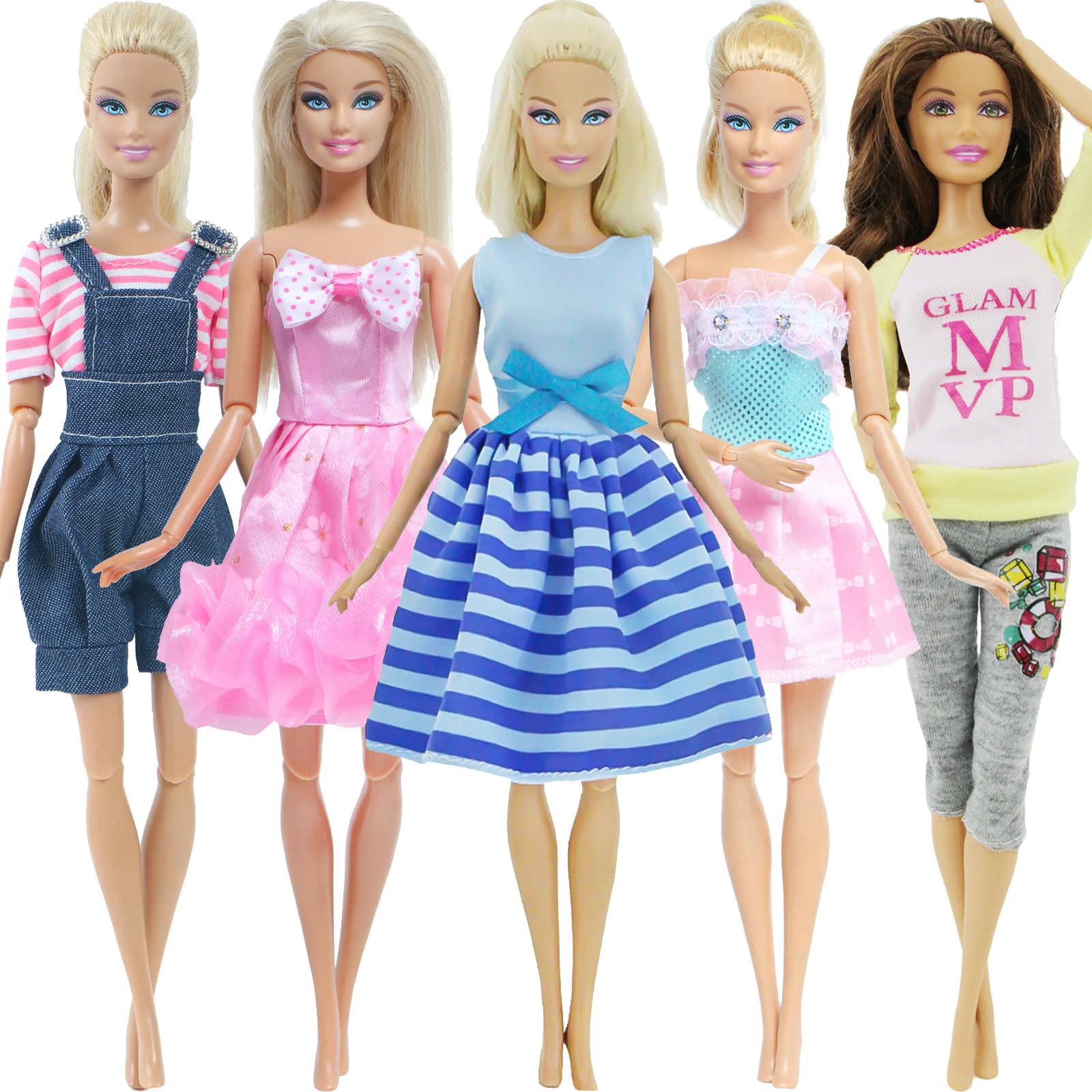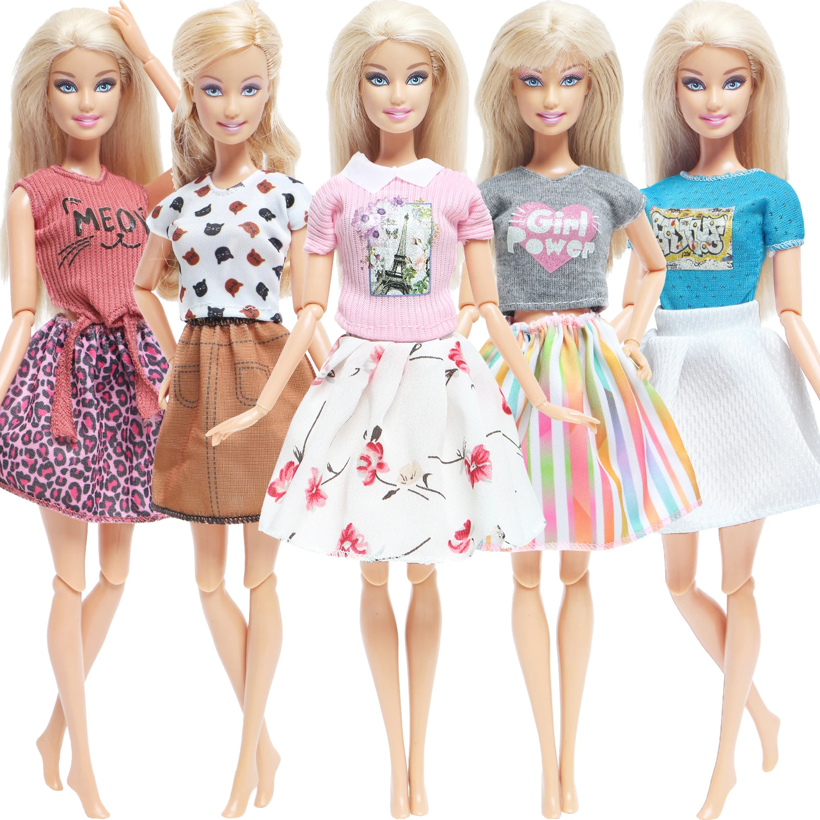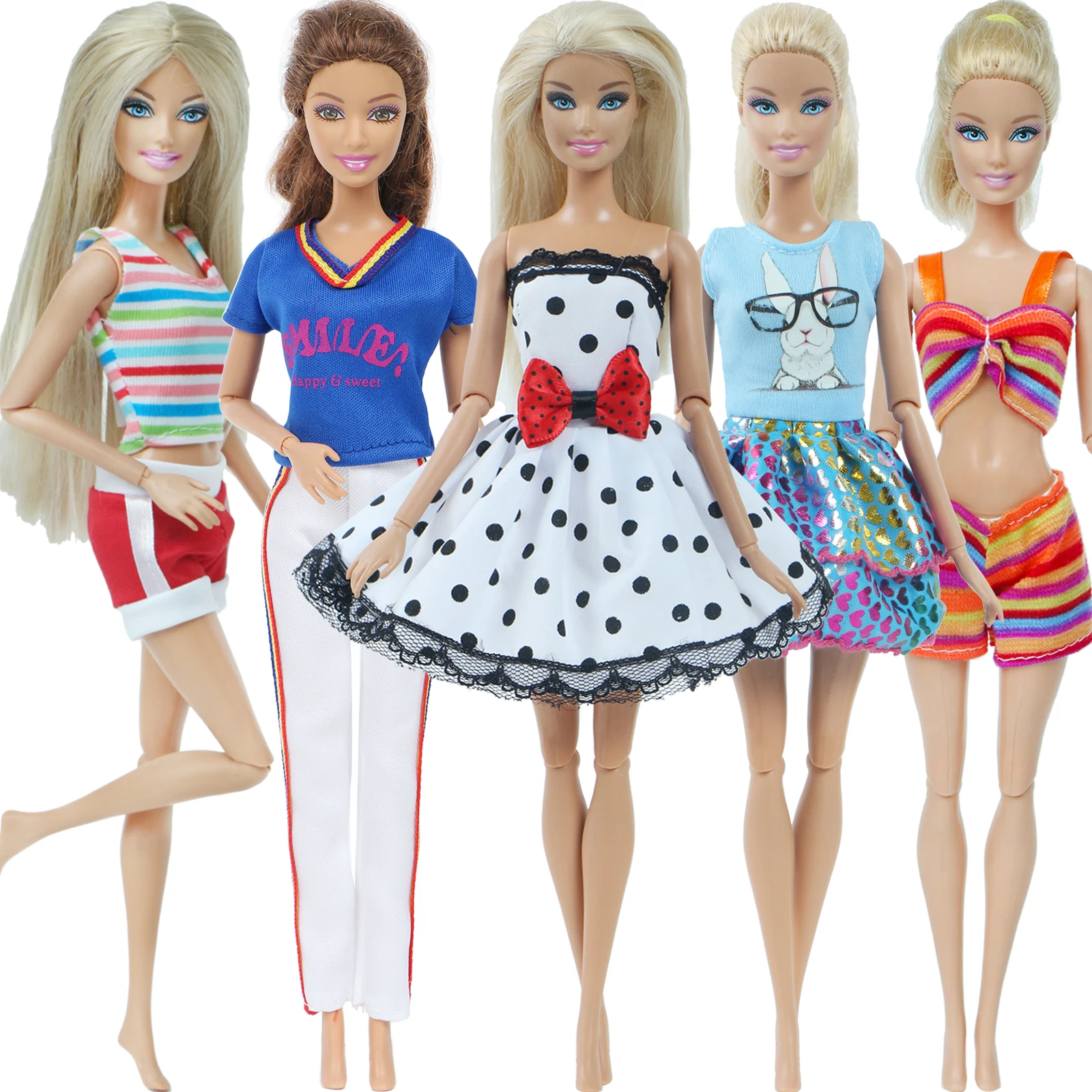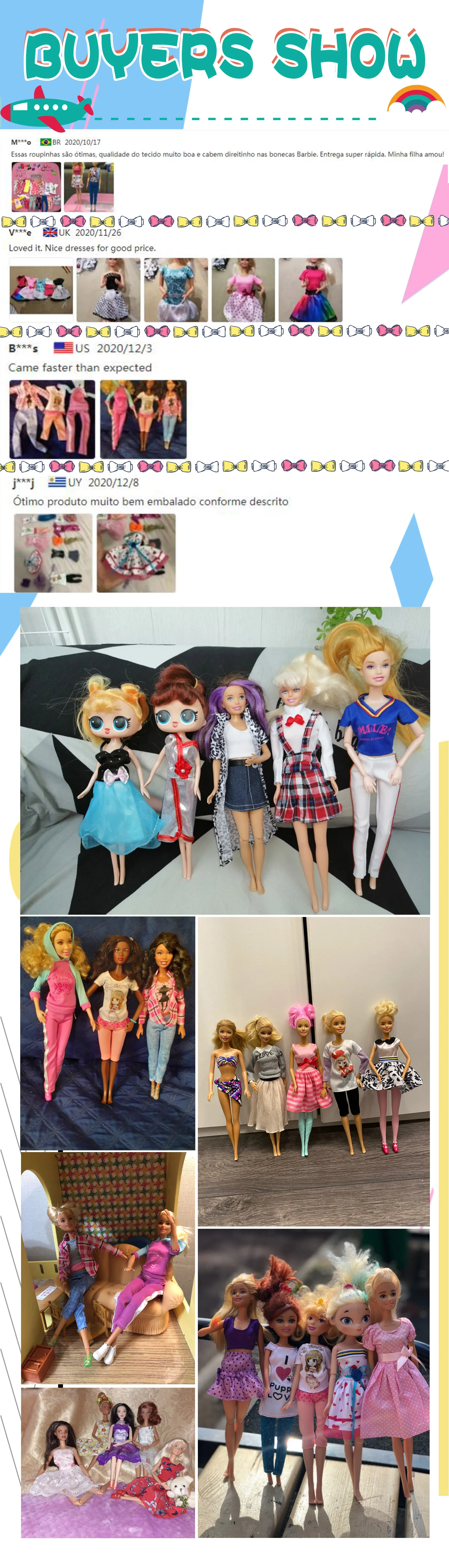Одежда Красивая, нитки немного торчат, но это легко зафиксировать. Заказ был отправлен в течение двух недель и еще около двух недель. Все костюмы хорошие. Но размер моста не крепится на нижней части 90s Барби. Но Skippy больше подходит для подростков. Остальные костюмы очень довольны. И рубашка из одного комплекта подходит даже для пухленьких Барби.