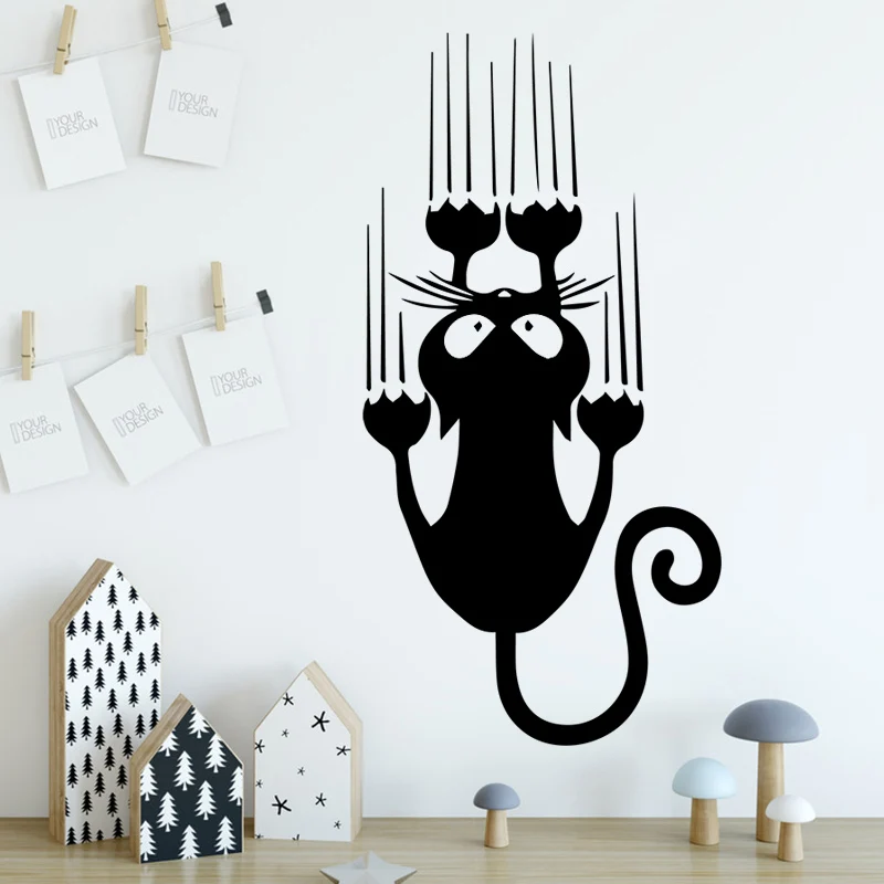 Виниловая наклейка на стену в виде кошки, для украшения гостиной