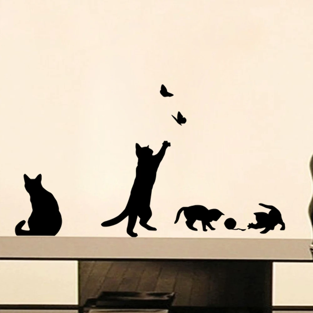 Наклейки для стен, виниловые, с изображением трех черных котов