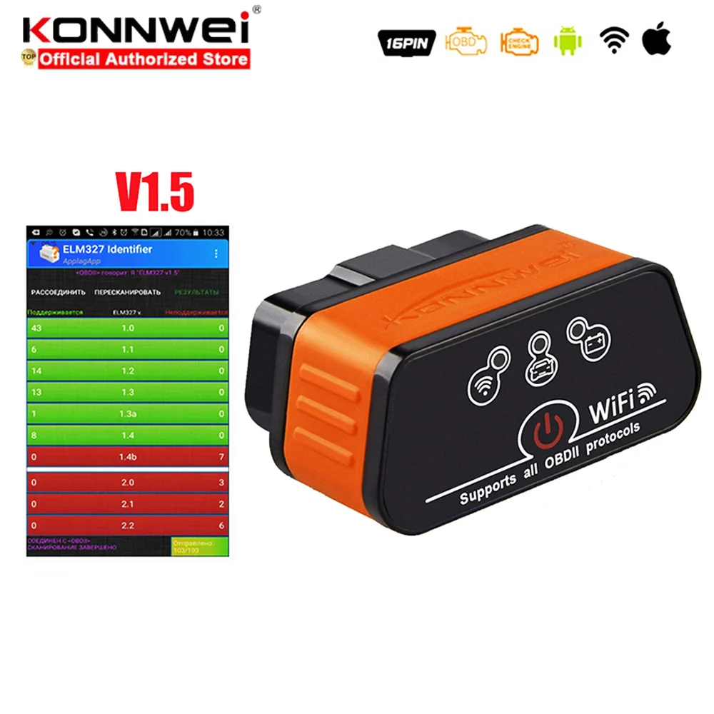 Автомобильный диагностический сканер EML327 v1.5 Icar2, OBD2 wifi, ODB II EML 327, для iPhone ELM 327
