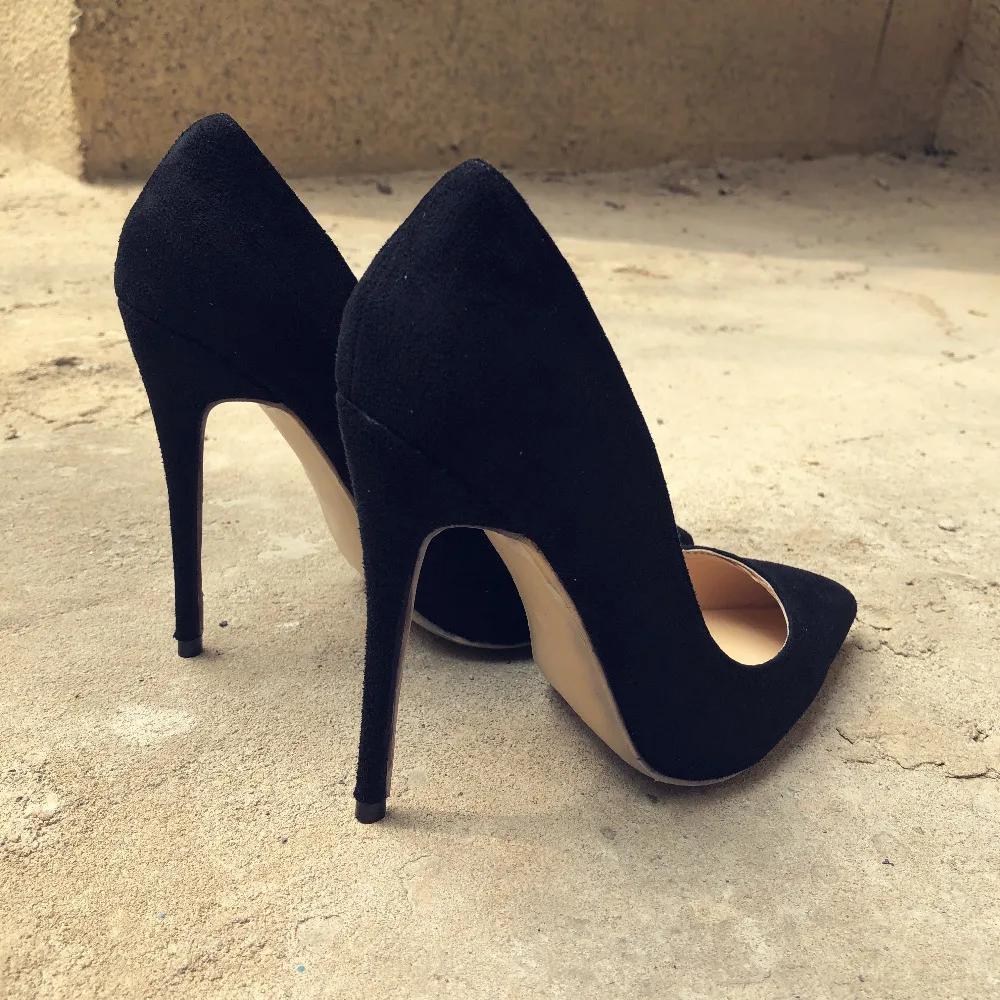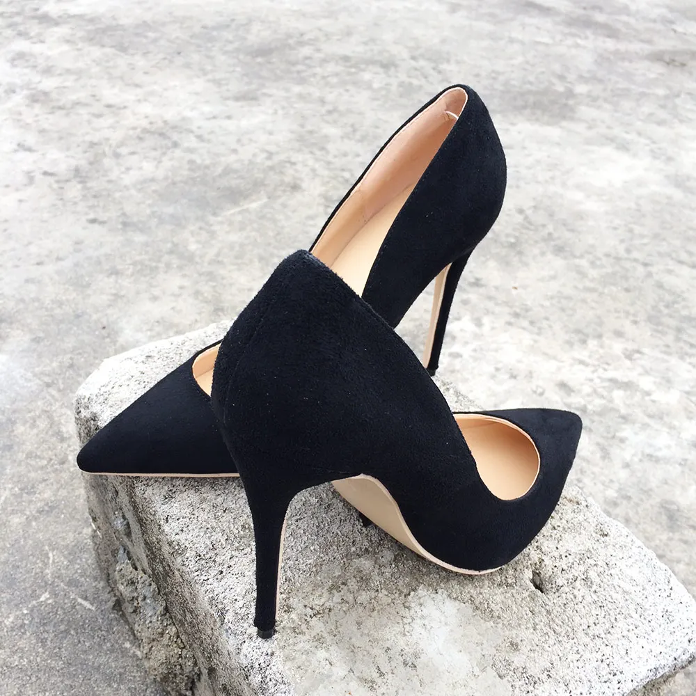 Женские замшевые туфли-лодочки Veowalk, элегантные женские классические туфли-лодочки с острым носком на высоком каблуке, привлекательные черные туфли-лодочки без застежки, под заказ