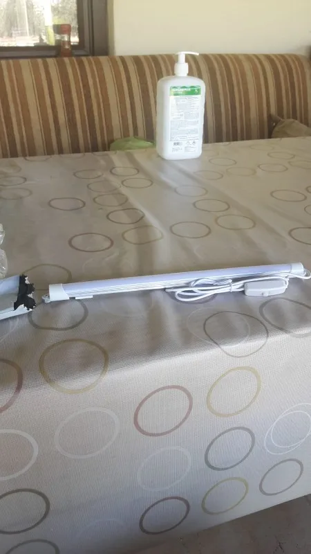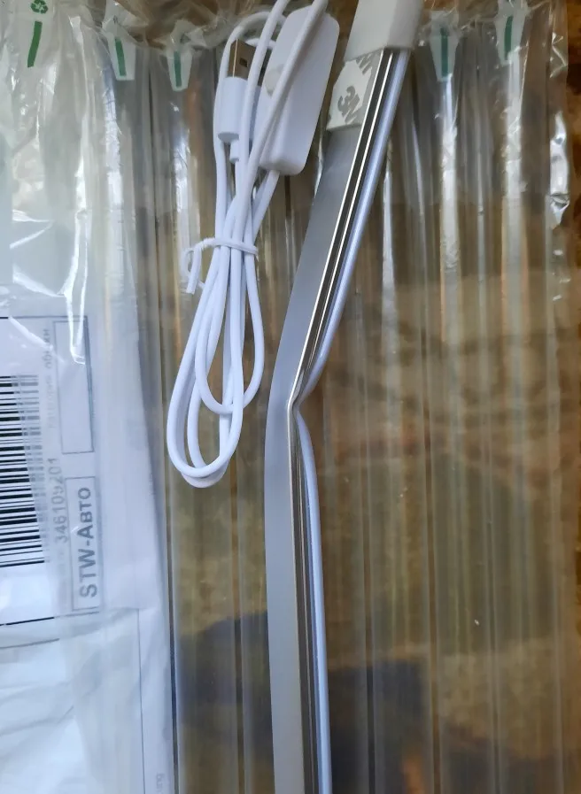 Лампа пришла сильно погнутой, не смотря на то, что была в воздушной упаковке. Доставка была через DPD в пункт выдачи Ситилинк. Возможно это они повредили при доставке. На удивление лампа оказалась рабочей. Удалось ее немного выпрямить, но вмятины все равно остались и портят весь эстетичный вид. Сама лампа светит не так ярко. Пару лет назад покупала похожую в Fix price , она была яркой, и в добавок к ней шли маленькие металлические пластинки, которые клеились к стене и к которым уже крепилась сама лампа на магнитах. Здесь металлических пластин в комплекте не было.