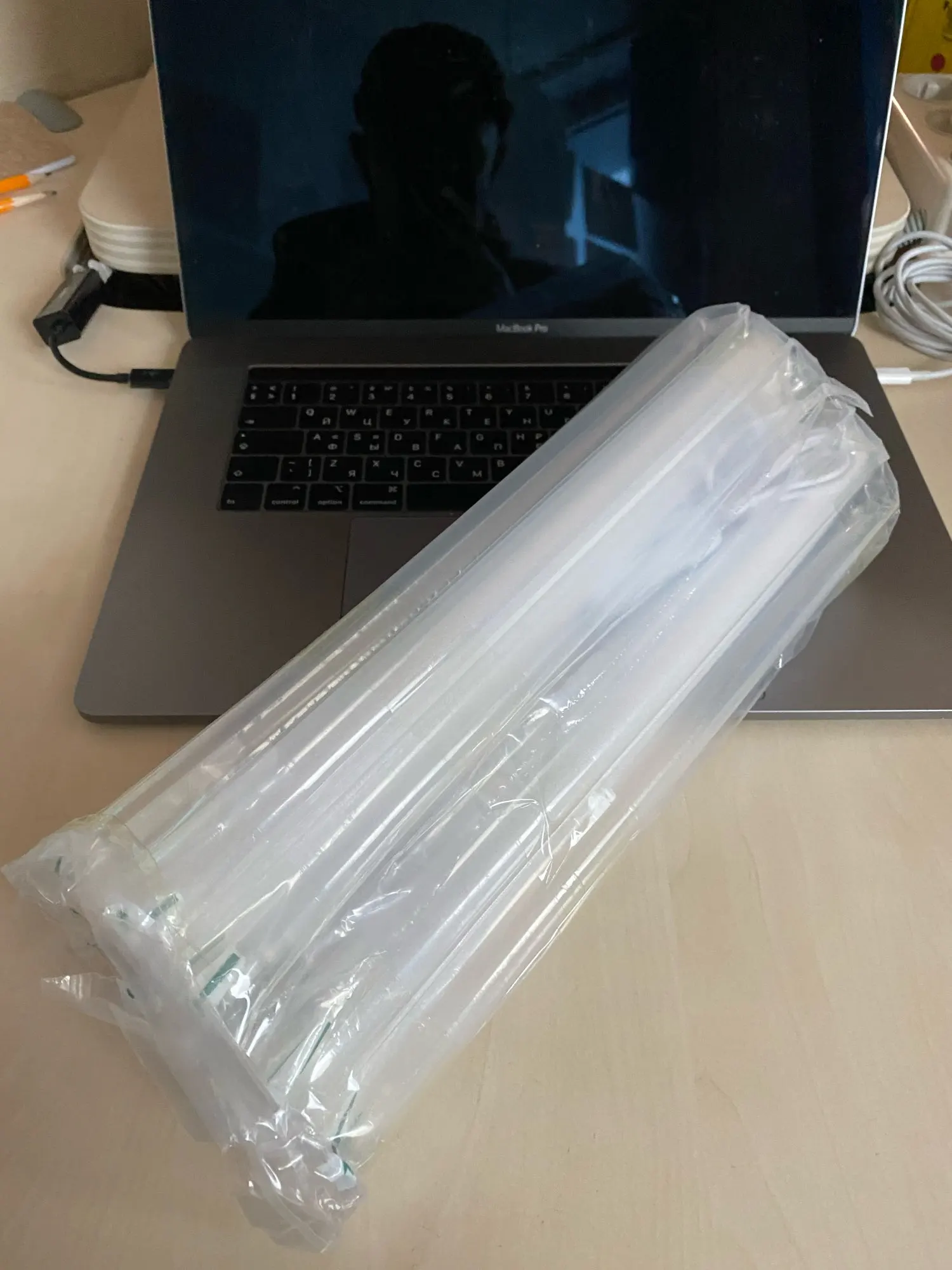 Отличный светильник! Дошел до Москвы за 7 дней, получил в Пятерочке. Упаковка надежная, сам товар не пострадал. Брал синего цвета 52 см для компьютерного стола. Очень доволен. Заказал себе еще один точно такой же!