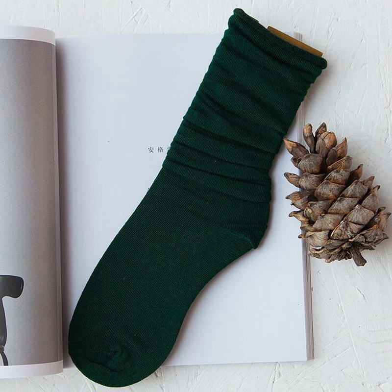 Женские Повседневные вязаные хлопковые кальсоны Meias, Осенние, телесные, черные, зеленые, винтажные, QMH, ретро-носки