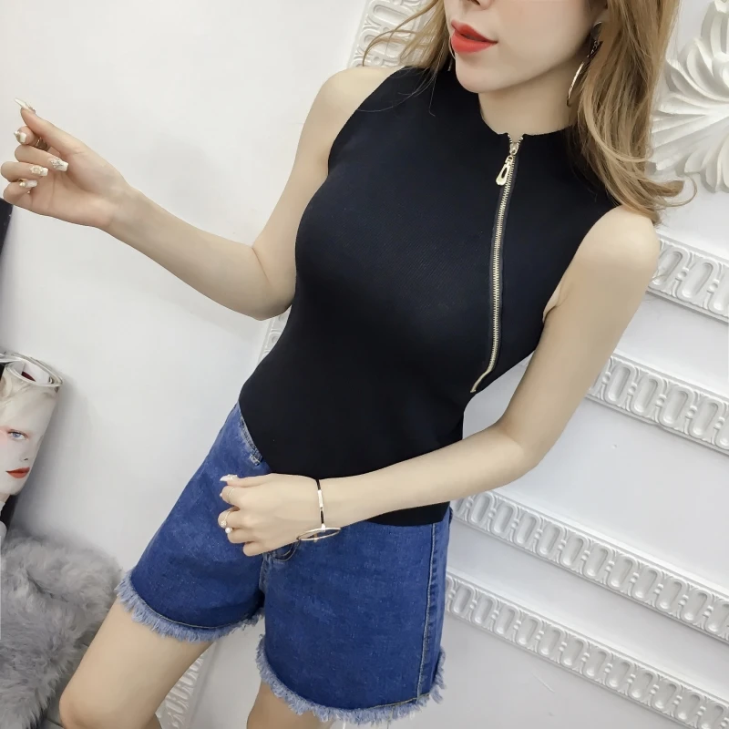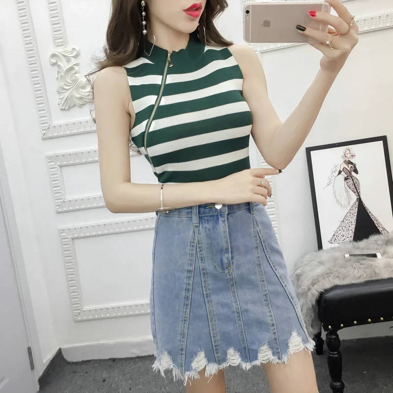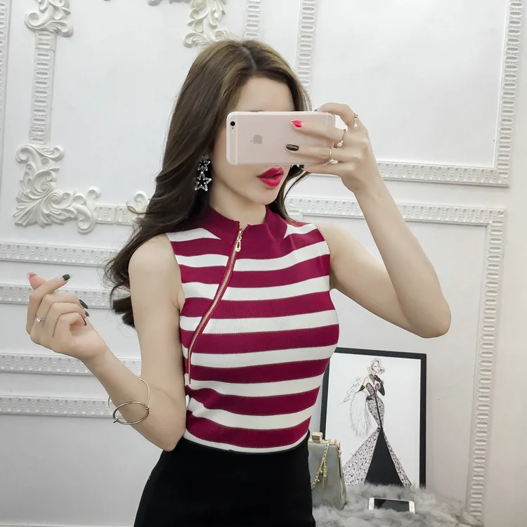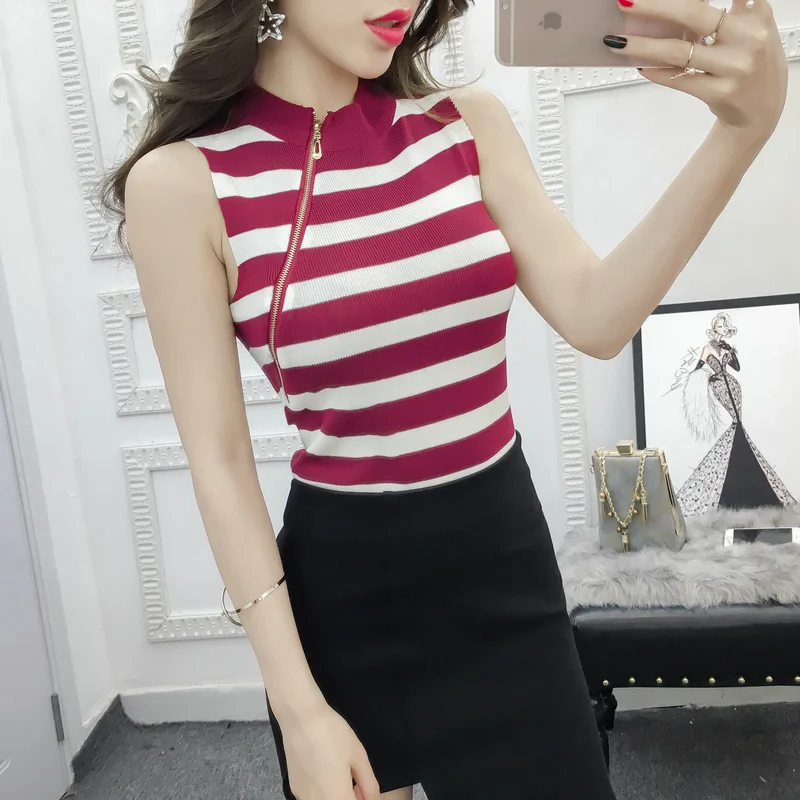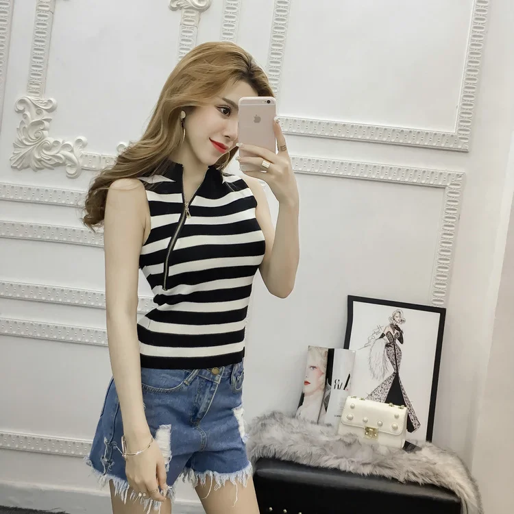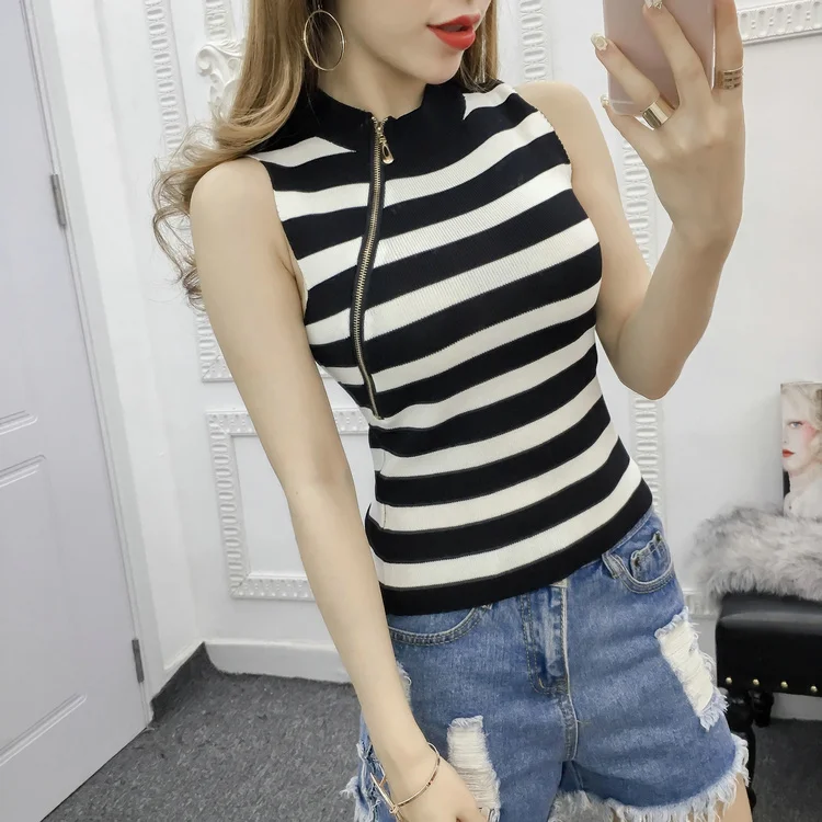 Модная одежда для девочек платье-футляр Chic застежкой-молнией для девочек футболки без рукавов на бретельках Топ в полоску Топы для женщин