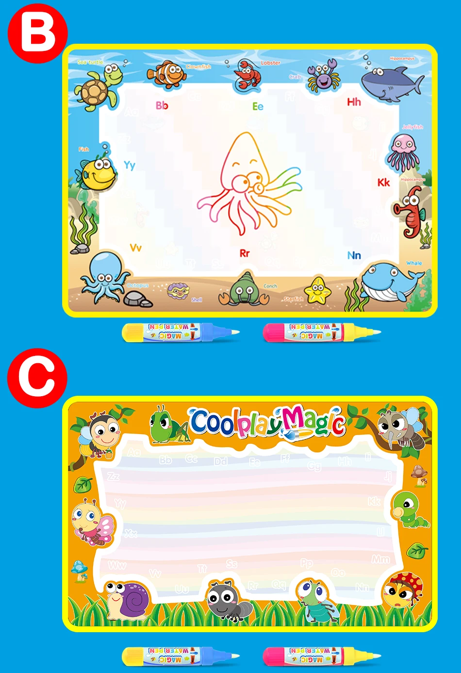1 х Коврик для рисования водой 2 x маленькая ручка для рисования