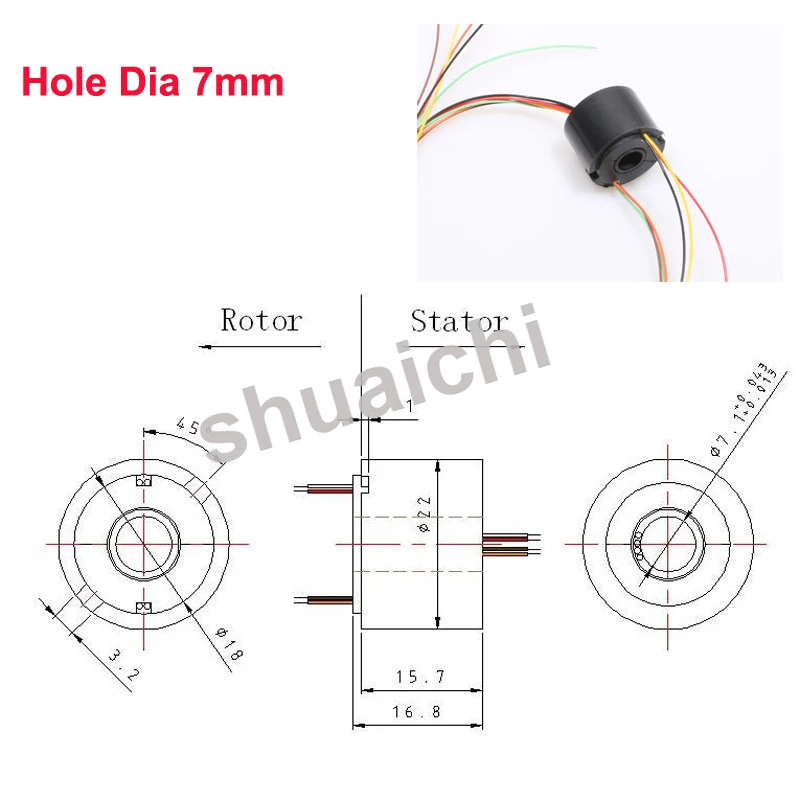 -Кольцо скольжения со сквозным отверстием стандартной серии, диаметром 5 мм (применимо к любому <= 5 мм) и внешним диаметром 22 мм. Это интегральное прецизионное Токопроводящее скользящее кольцо из пластика и алюминиевого сплава. Сигнал поддержки (2A), напряжение 15A 220VAC/VDC.