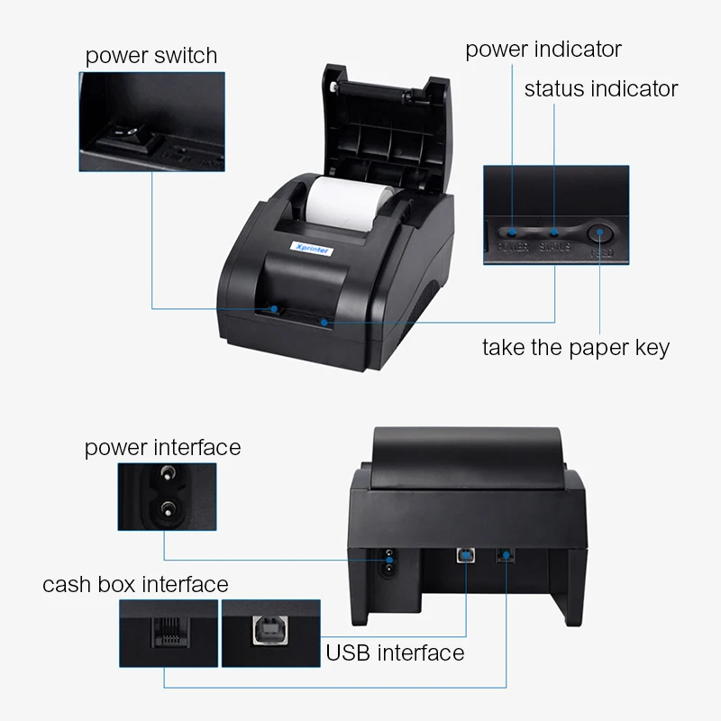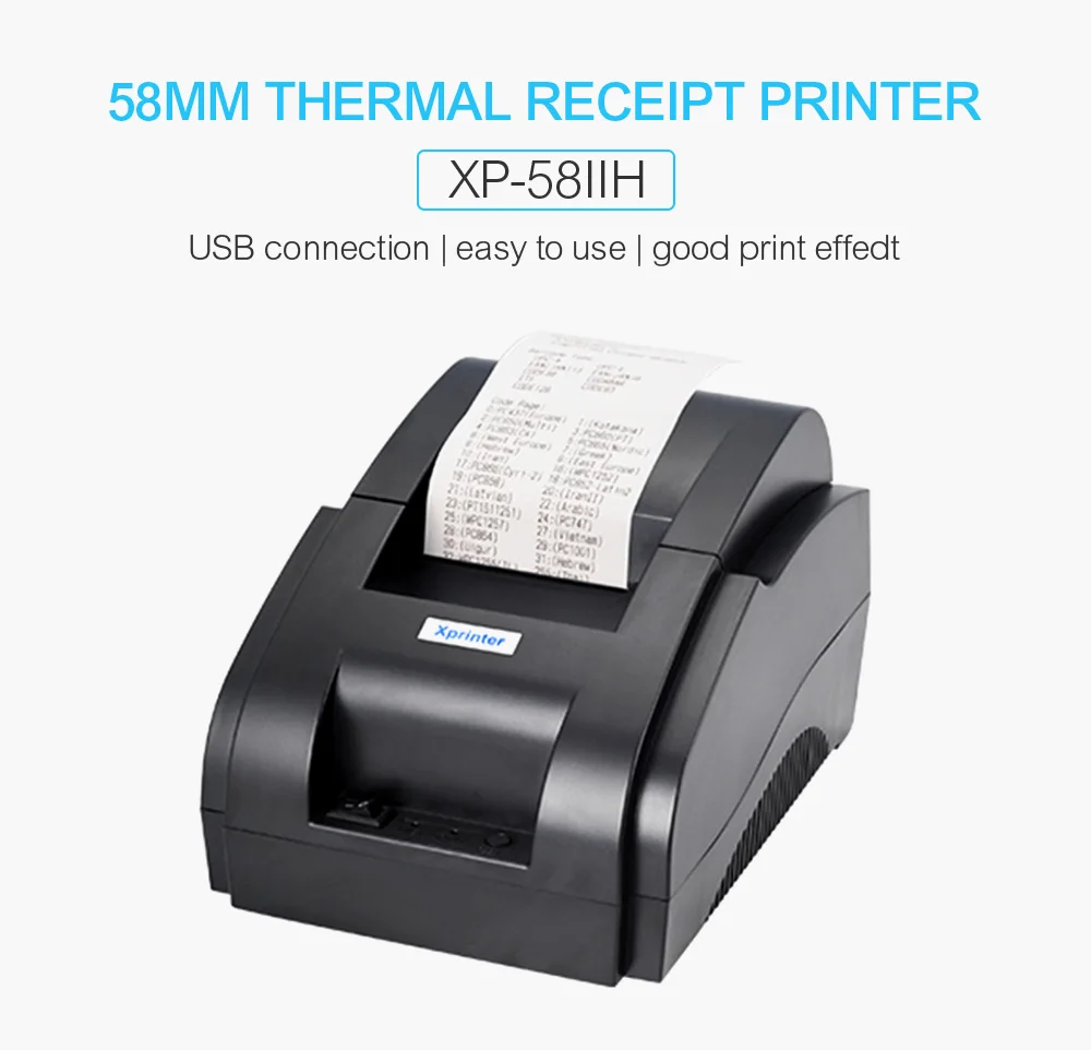 Термопринтер 58 мм чековые принтеры для XP-58IIH ресторана супермаркет одежда общий Sup порт 58 мм ширина USB порт как 5890K