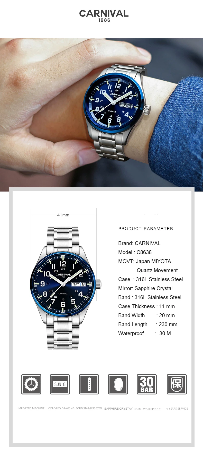 Новые швейцарские роскошные брендовые японские кварцевые мужские часы MIYOTA, светящиеся водонепроницаемые часы из настоящей сапфировой стали