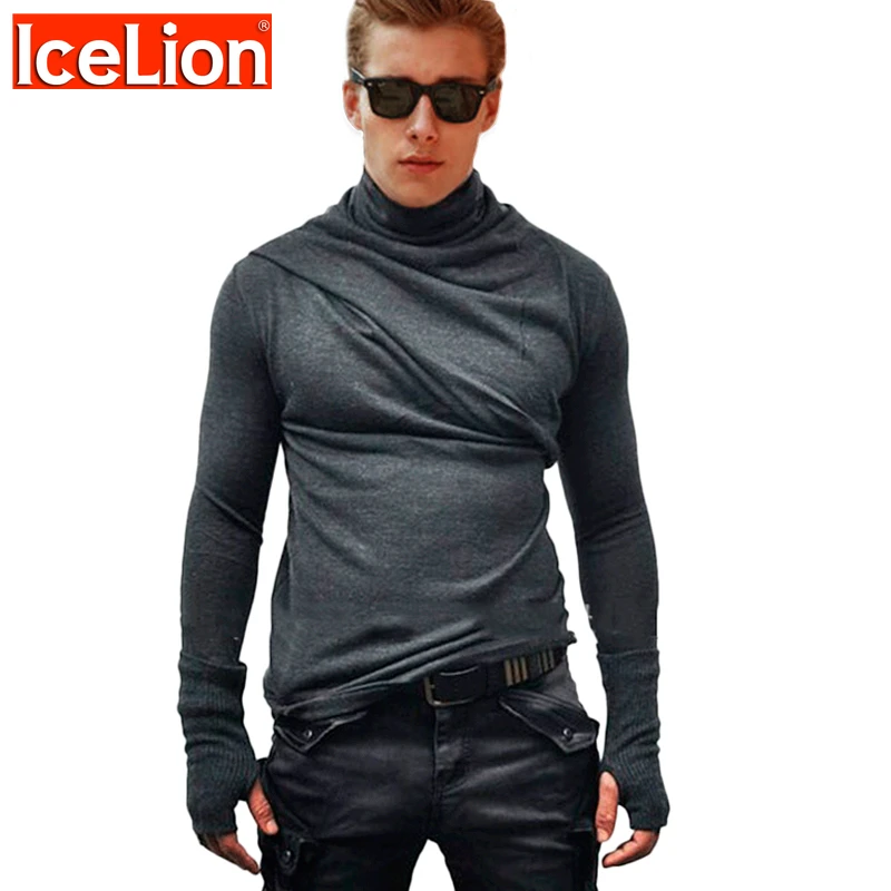 IceLion 2021 Новинка весны Фитнес Футболка модная мужская спортивная обувь с высоким воротником перчатки дизайн в стиле хип-хоп с длинным рукавом, тонкие обтягивающие рубашки, Мужская футболка