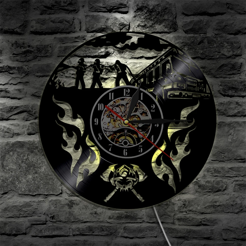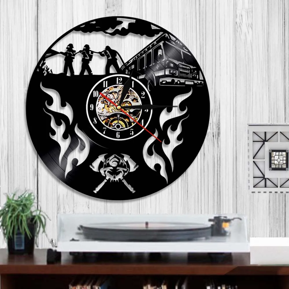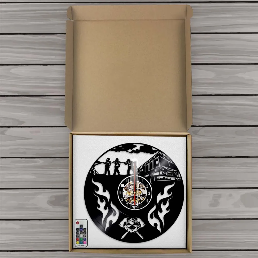 Пожарный виниловых пластинок настенные часы противопожарная современный Винтаж домашний декор висит силуэт светодиодный светильник лампа vitage Dragon для пожарного