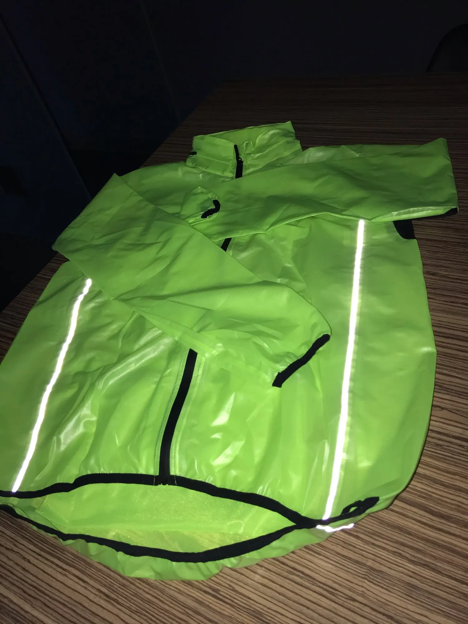 Хороший дождевик, стильный, со светоотражающими полосами в большом количестве. Имеет вентиляцию в районе подмышек и на спине. Единственное, что не понравилось, капюшон слишком маленький. Даже если просто одевать на голову без шапки - размера не хватает, чтобы хорошо закрыть голову. Может быть с кепкой будет более менее.