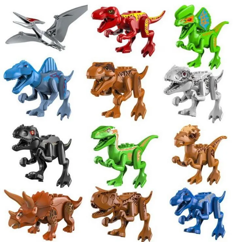 Животные из джунглей, тигр, Лев, медведь, волк, слон, леопард, динозавр, фигурка, конструктор, игрушки для детей