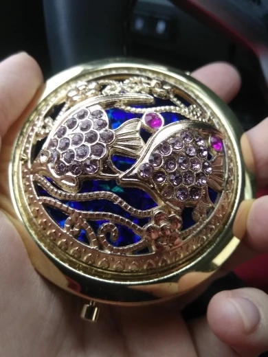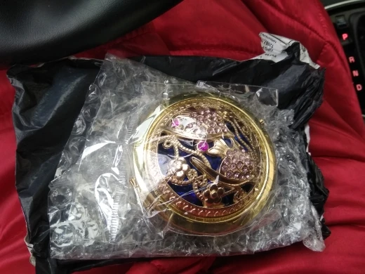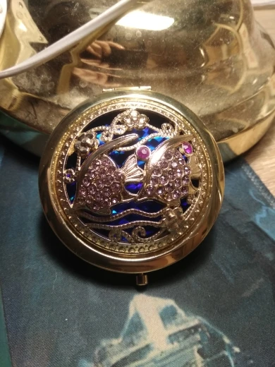 Куплено за 266 рублей, шло до Москвы около шести недель. Заказала два зеркала, но одно развернула доставка, и трэк до сих пор не обновлен, хотя прошел месяц. К самому зеркалу претензий нет, разве что одна из страз (глаз) не на месте - она приклеилась к ребру зеркала и оставила небольшую вмятину. Узор вырезан не очень хорошо, но это можно исправить маленьким ножом.