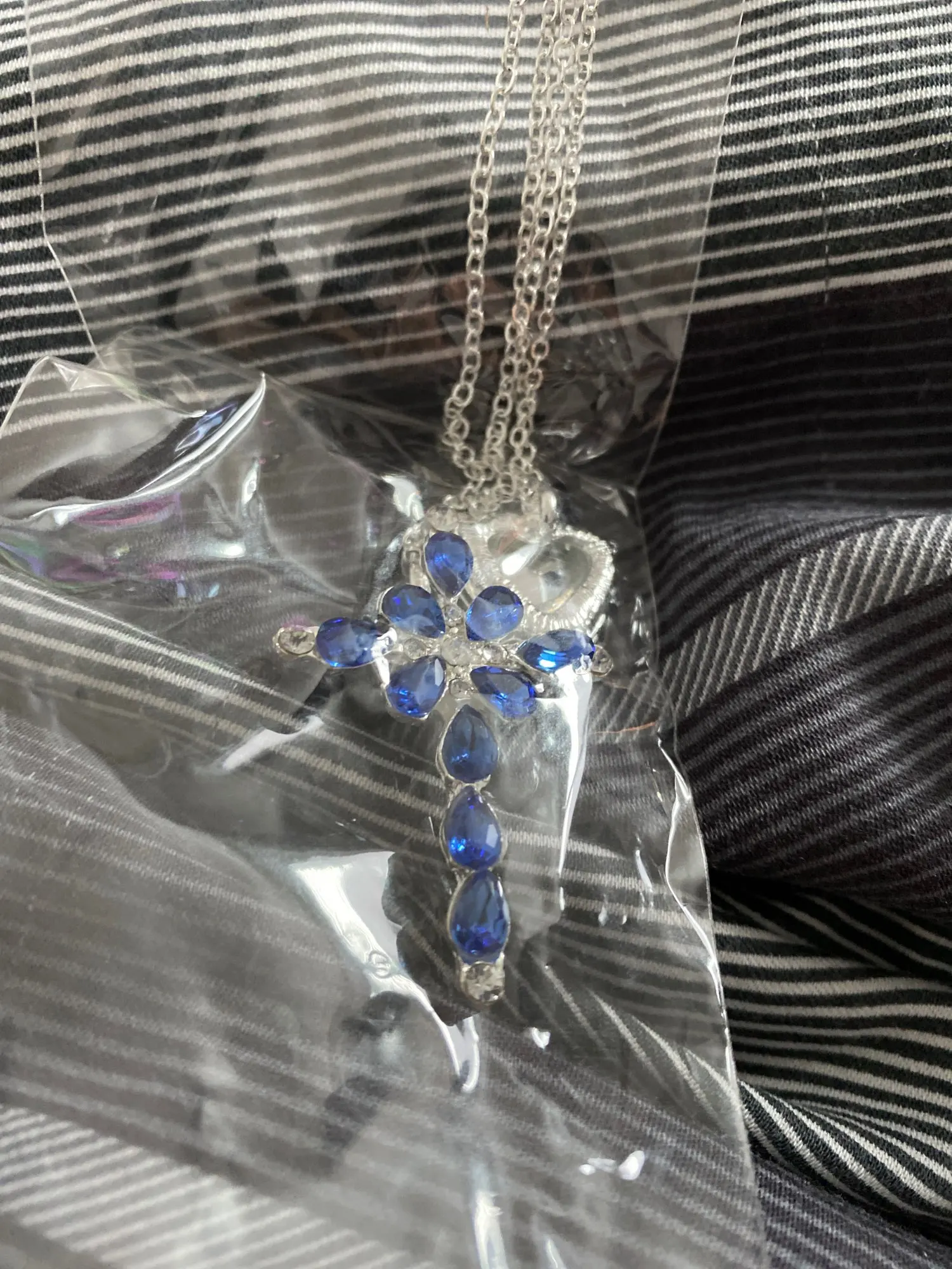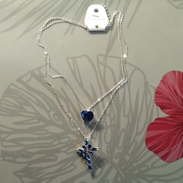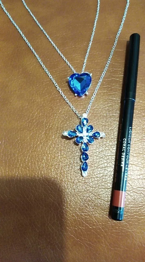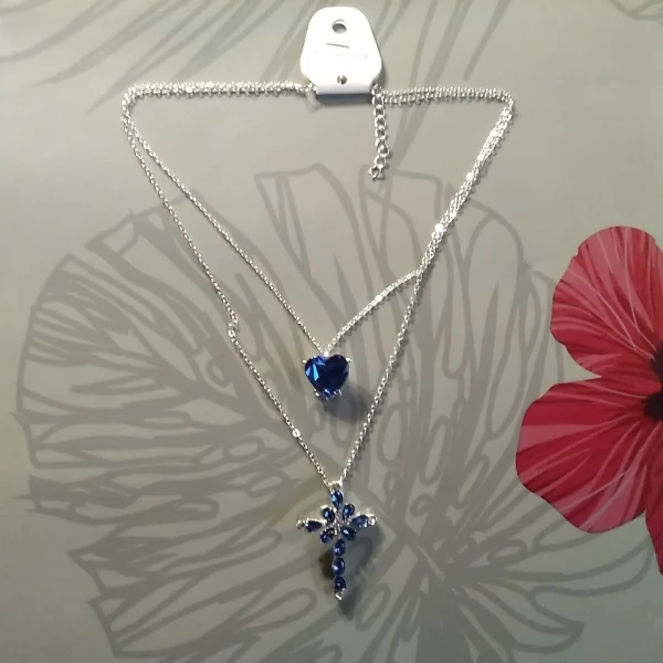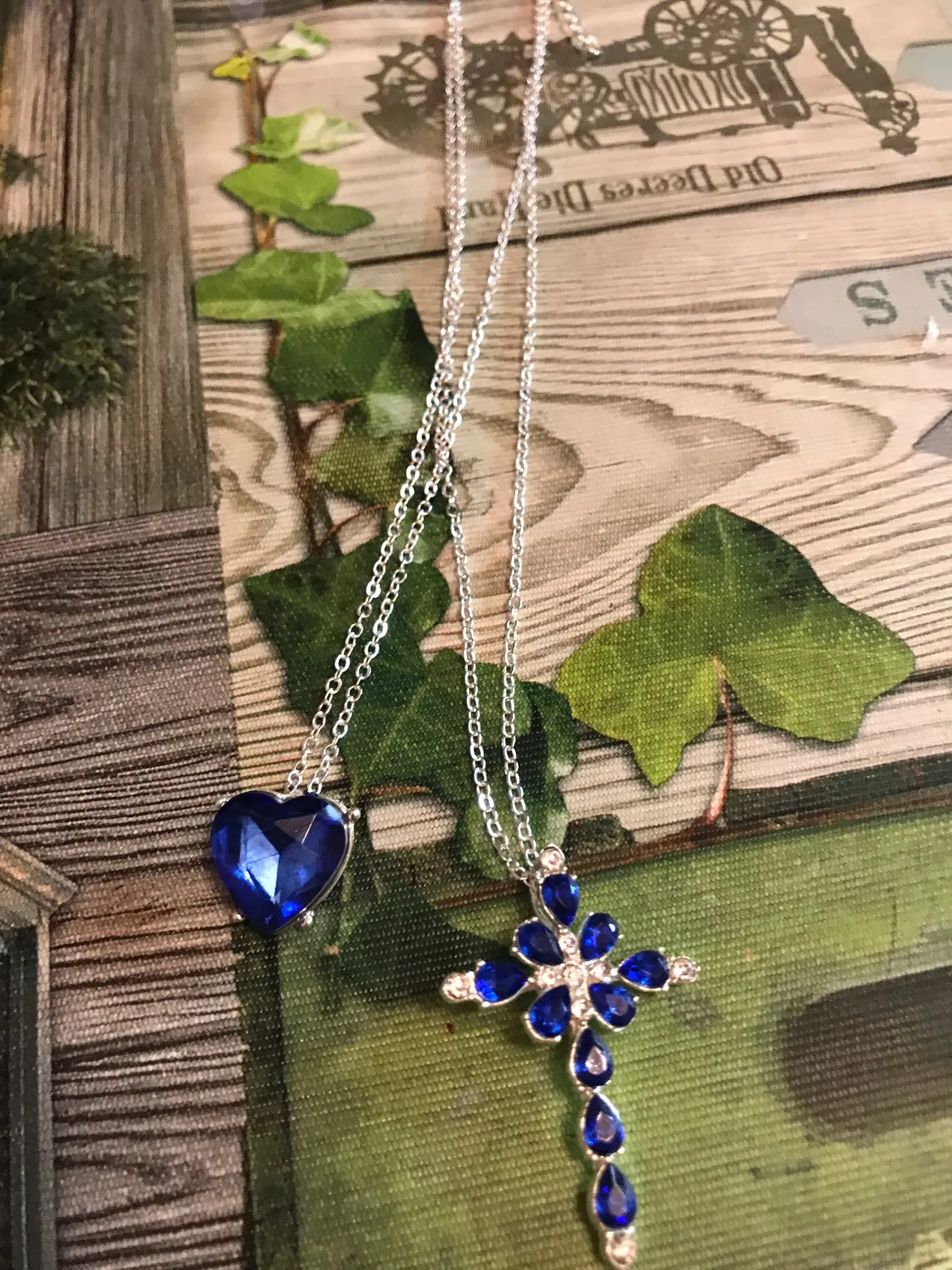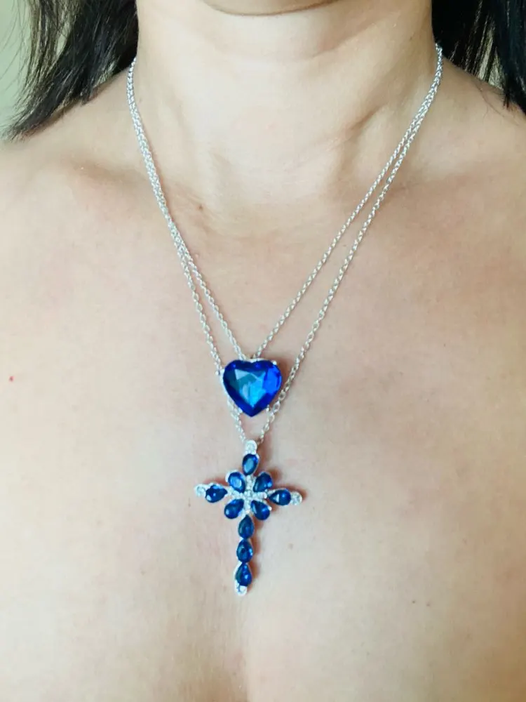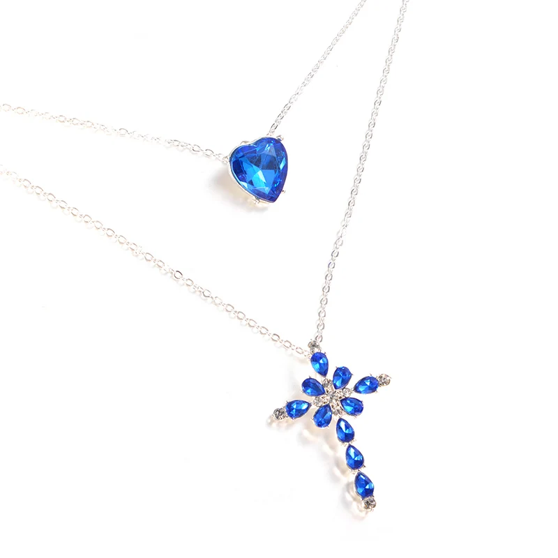 Многослойное ожерелье для женщин, стразы, ювелирные изделия с синим кристаллом, чокер, эффектное ожерелье на День святого Валентина, кулон крест с сердцем