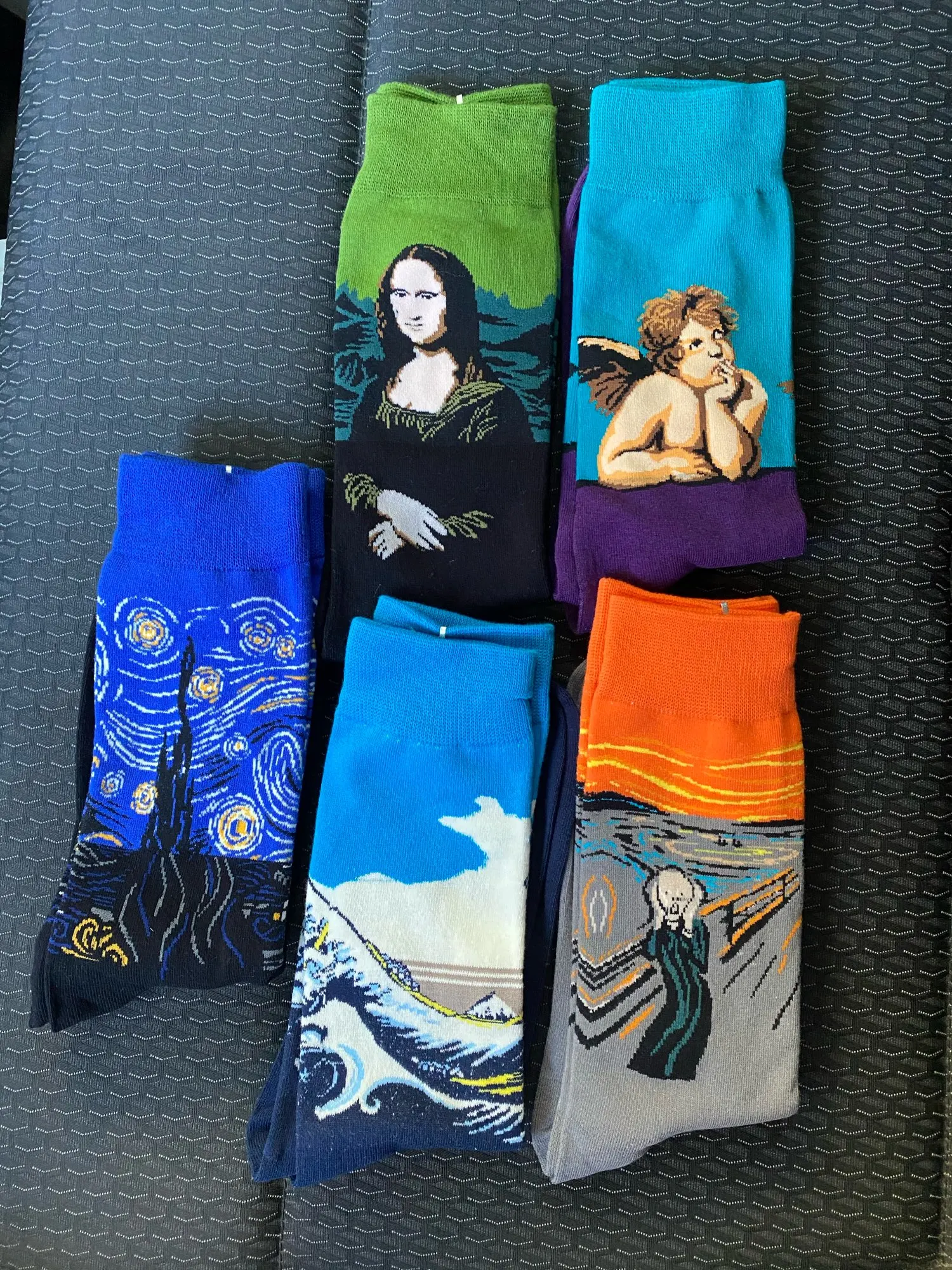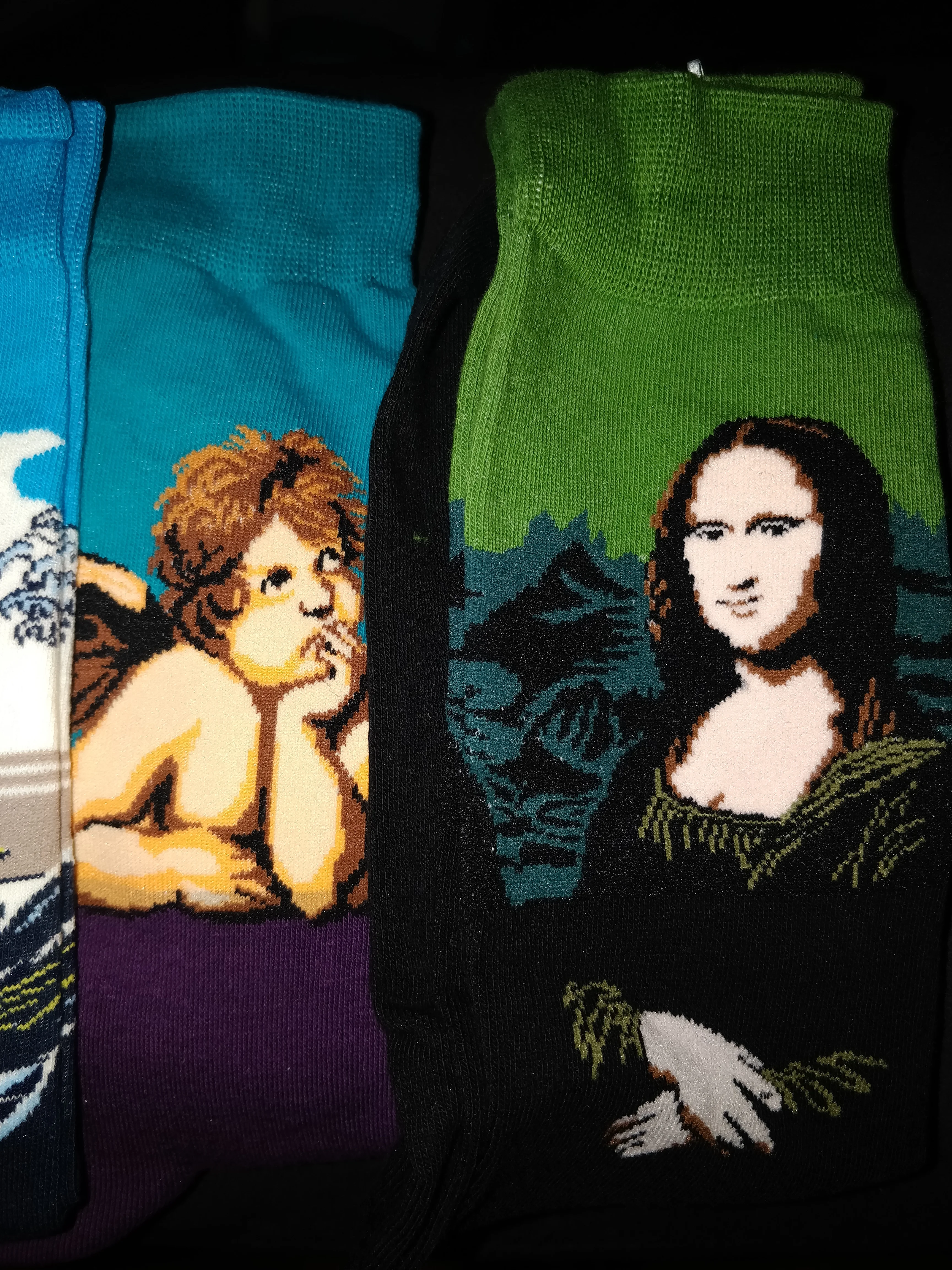 отличные носки, принт не смазанный. правда была надежда, что придёт в красивой красной коробочке, как на картинке, но к, сожалению, нет