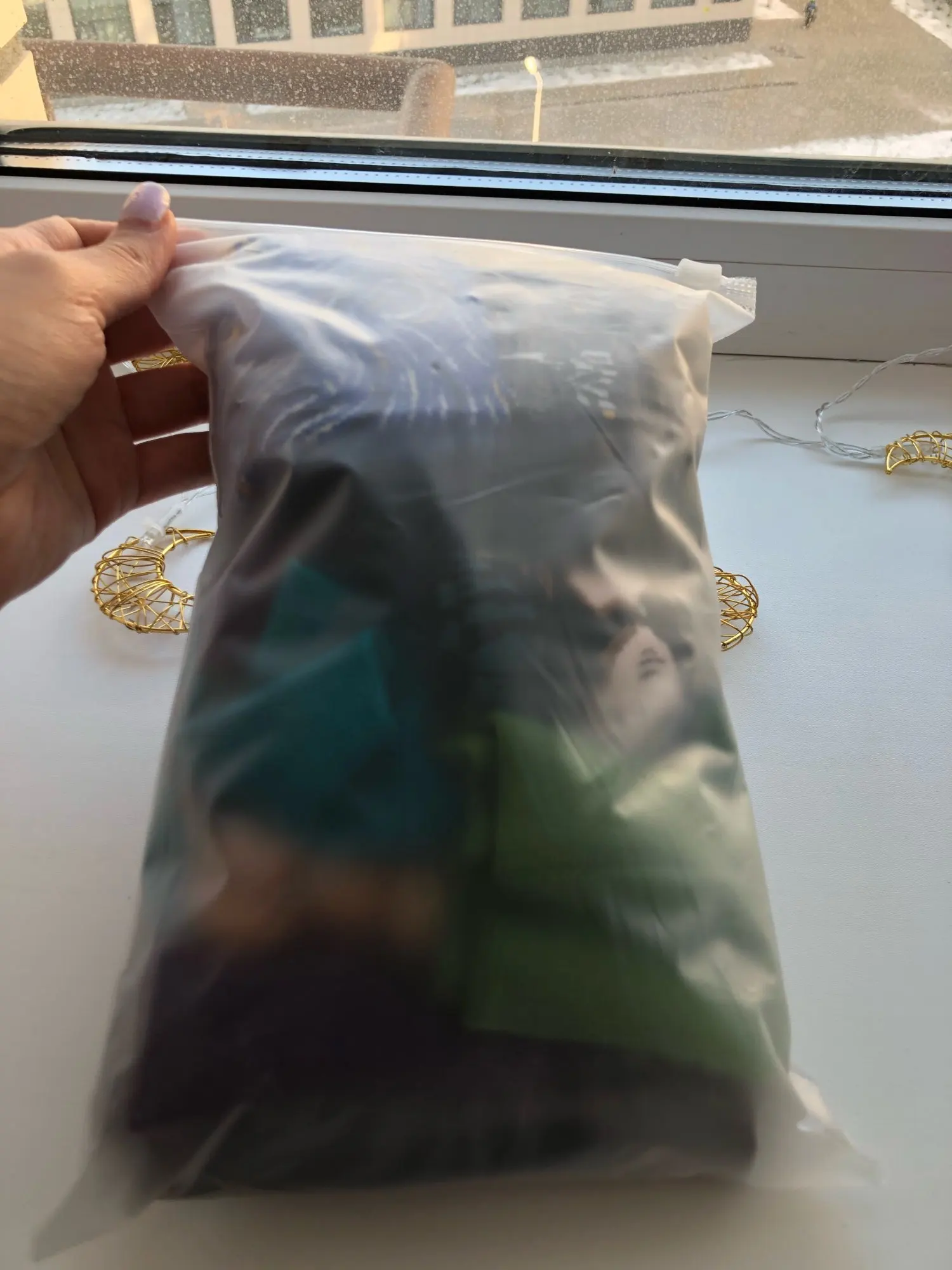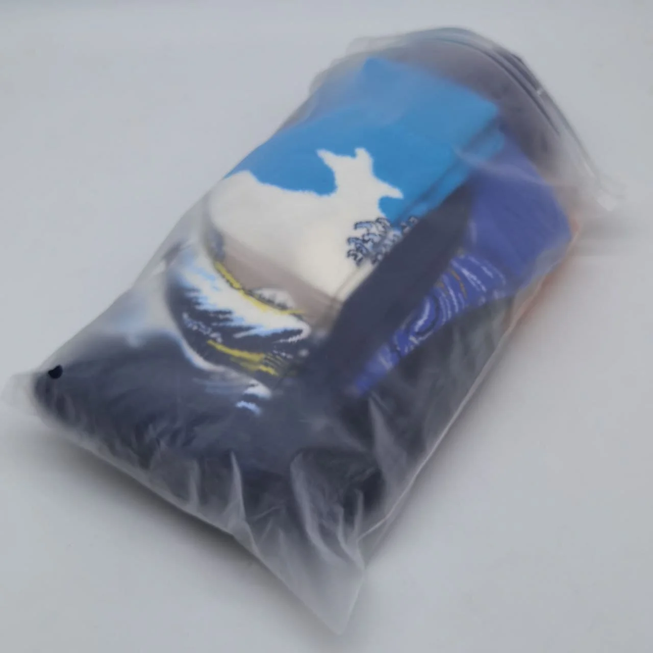 Это заняло много времени, и товар очень упакован. Я вырезал Носок, открыв сумку. Да, носки красивые.