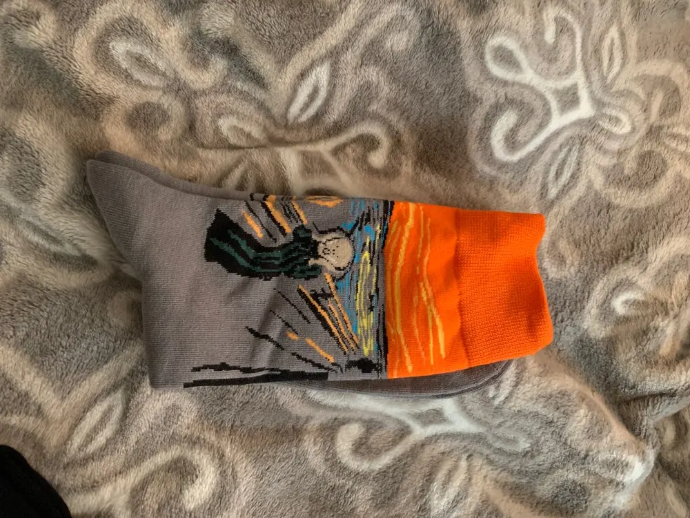 Красивые носки, очень забавные. Очень точно, как на фото. Хороший продавец и хорошее общение. Посылка прибыла очень быстро. Я рекомендую его. Все наилучшие пожелания. Оставайтесь здоровыми. Китай rock'in!