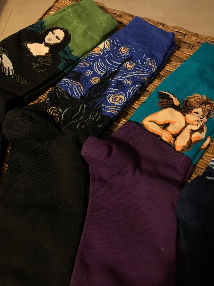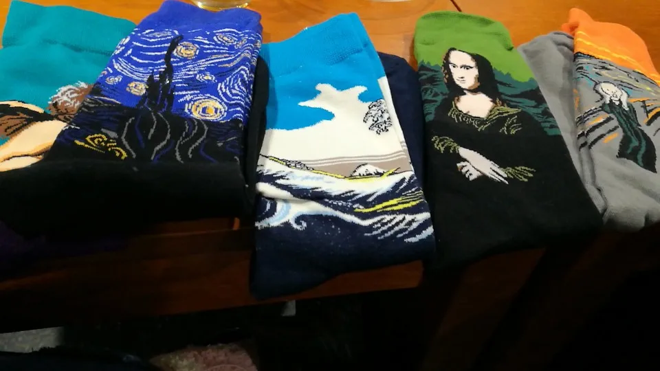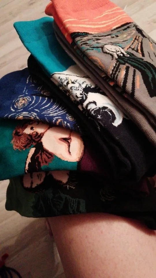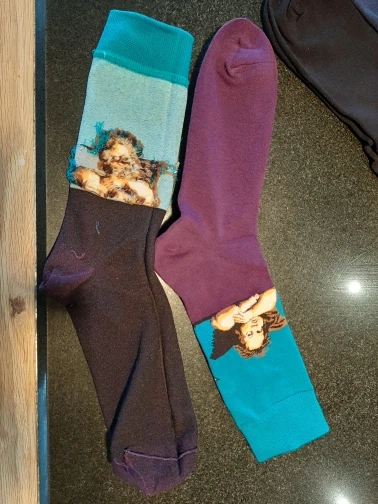 Я так рад. Очень хорошие носки, они толстые и немного согревают. Рисунки действительно хорошо выполнены. Мне нравится.