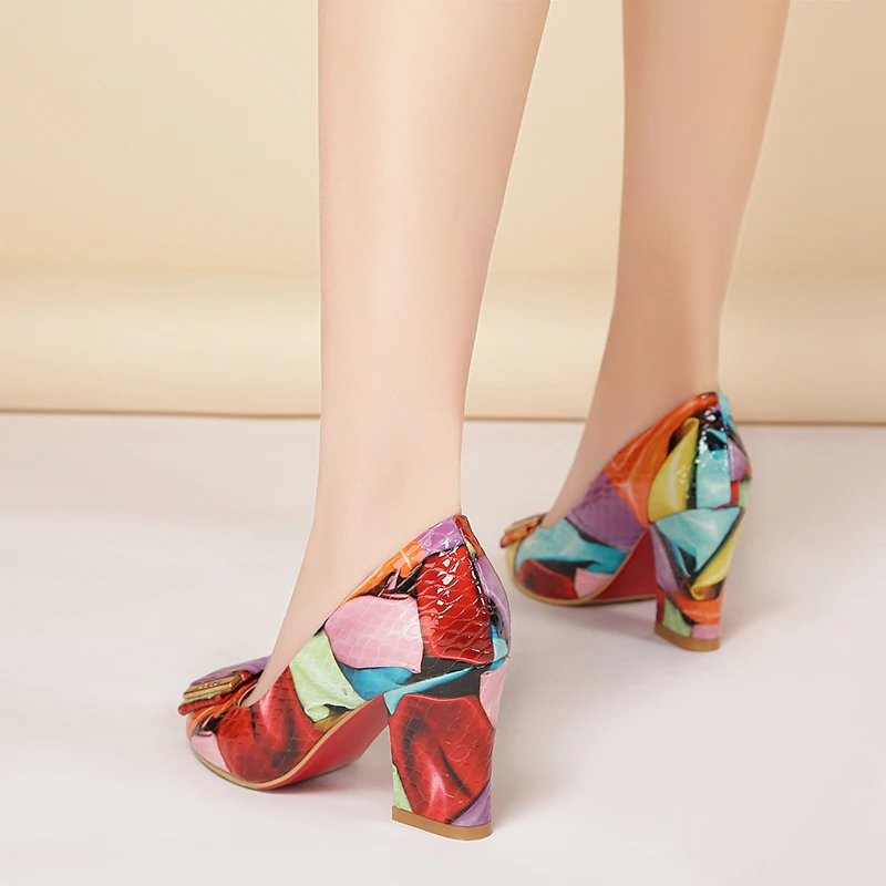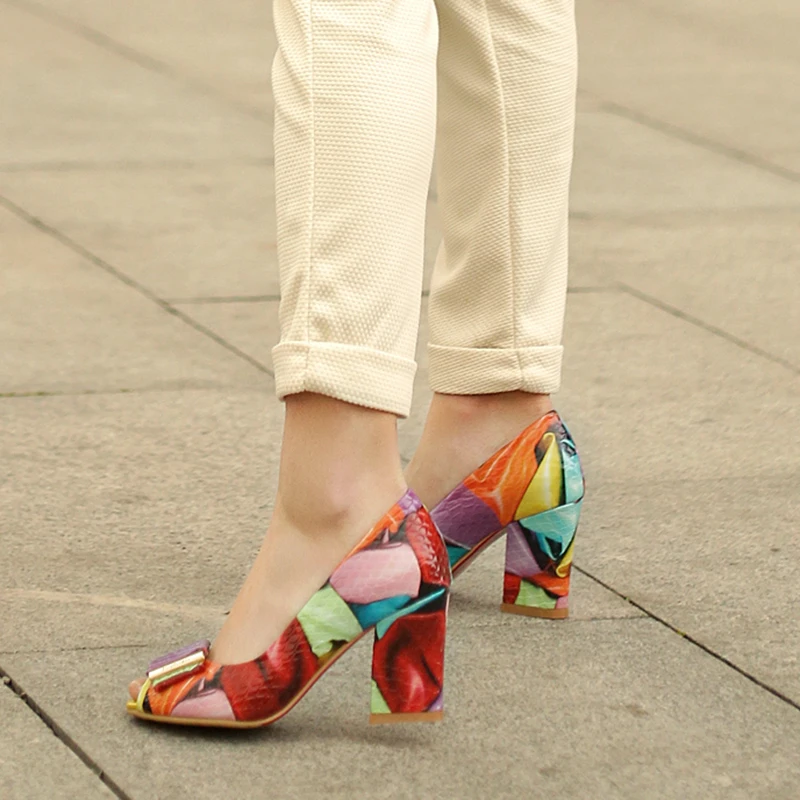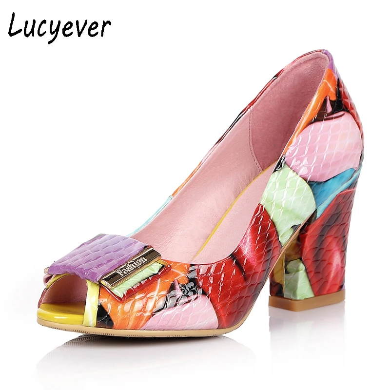 Туфли-лодочки женские с открытым носком, высокий толстый каблук, коровья кожа, модные босоножки, разные цвета, вечерние, большие размеры, лето 2022