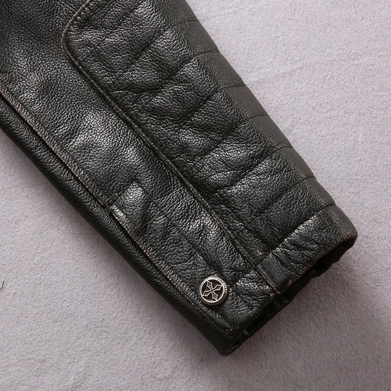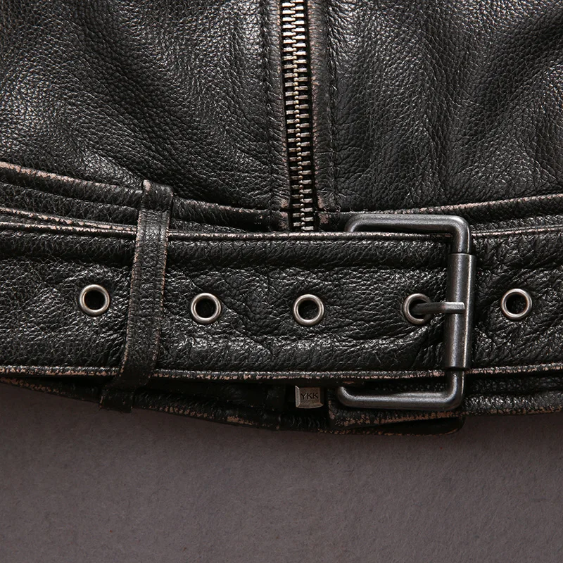 2018 винтажная Черная мужская кожаная мотоциклетная куртка диагональная молния размера плюс 4XL приталенная Байкерская кожаная куртка из воловьей кожи Бесплатная доставка