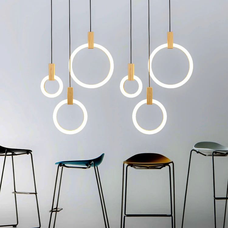 Современная Деревянная кольцевая люстра, дизайнерская лампа в сканд...