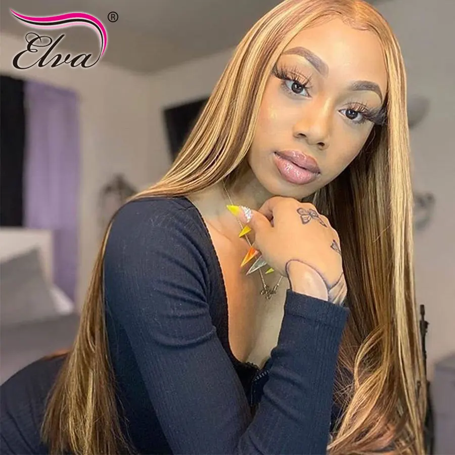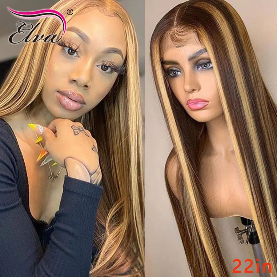 Elva Hair Ombre 13x6 парики из натуральных волос на шнуровке, предварительно выщипанные прямая шнуровка, парики для чернокожих женщин с детскими волосами, светлые волосы Реми