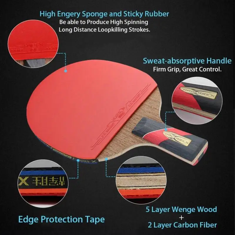Ракетка для настольного тенниса Huieson Wenge из углеродного волокна, 6 звезд, клейкая резиновая ракетка, супермощная ракетка для пинг-понга