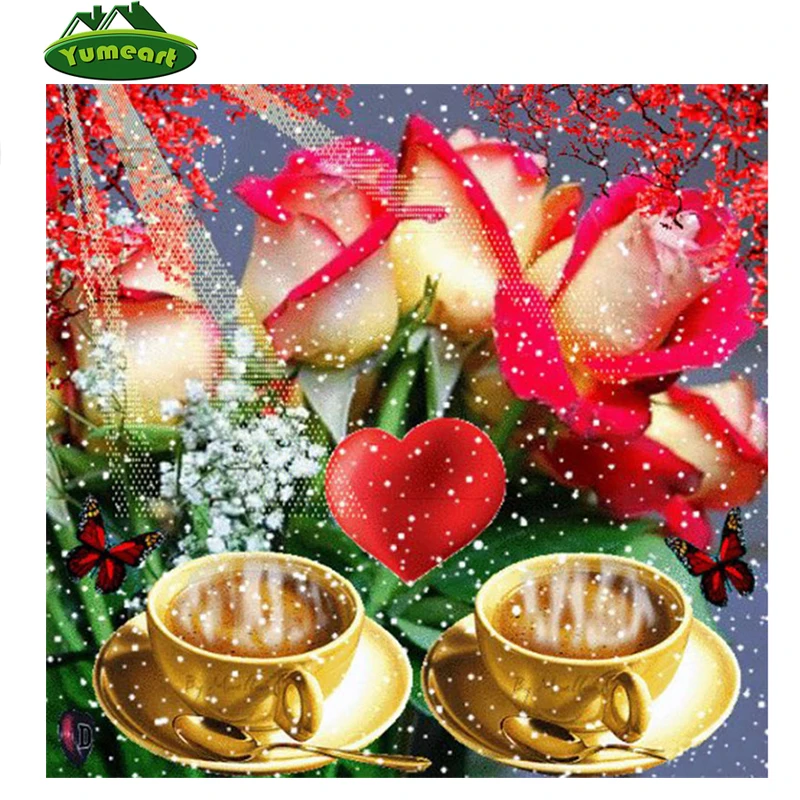 Красная роза, Цветочная вышивка из страз, кофе, сделай сам, алмазная живопись в форме сердца, любовь, роза, вышивка крестиком стразы, украшение для стен