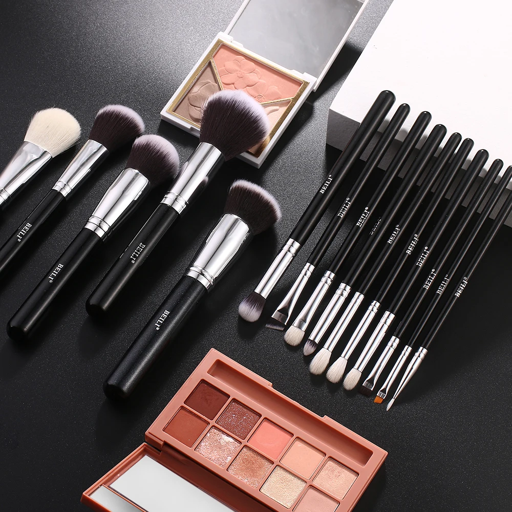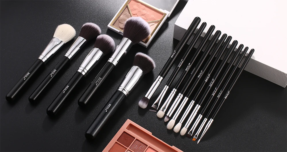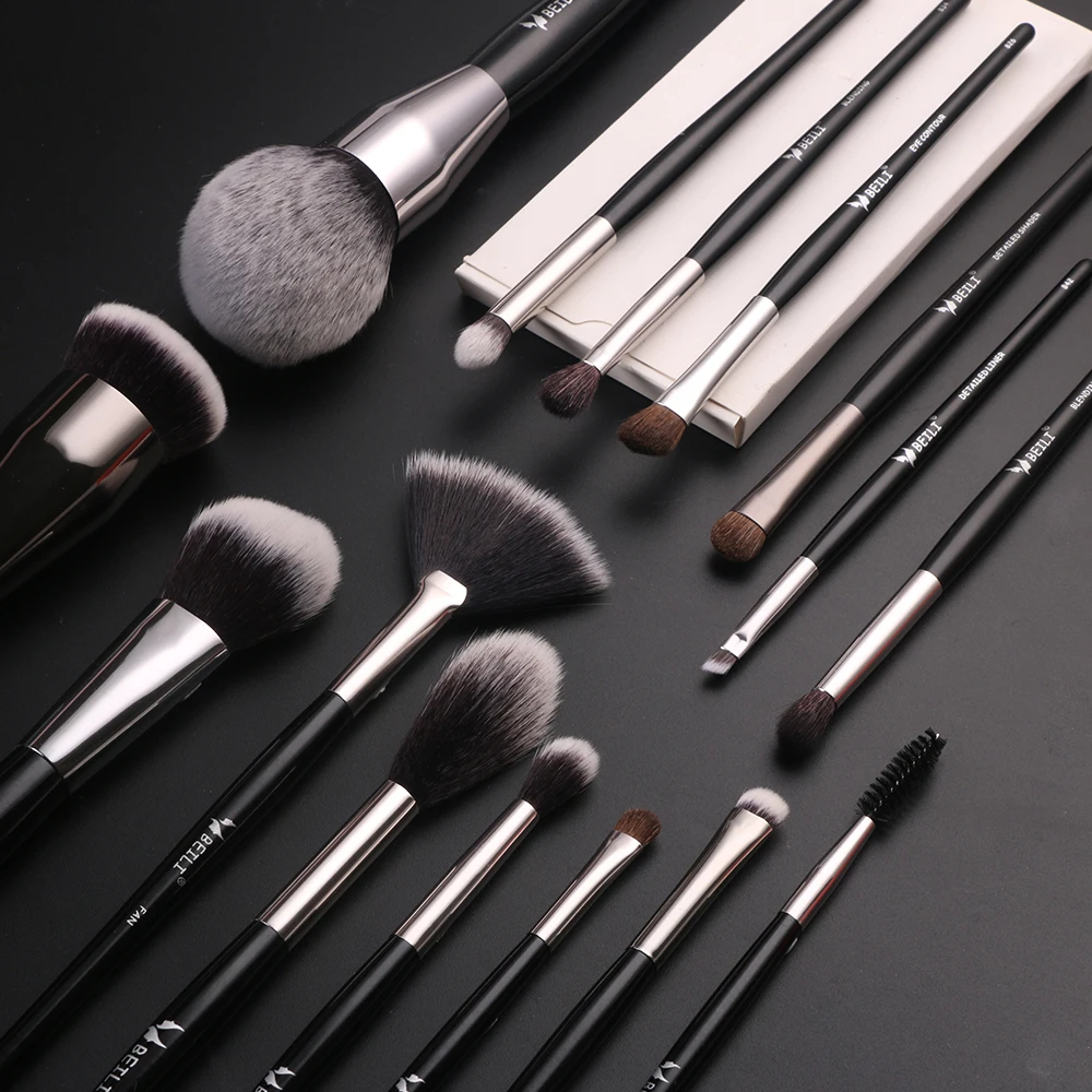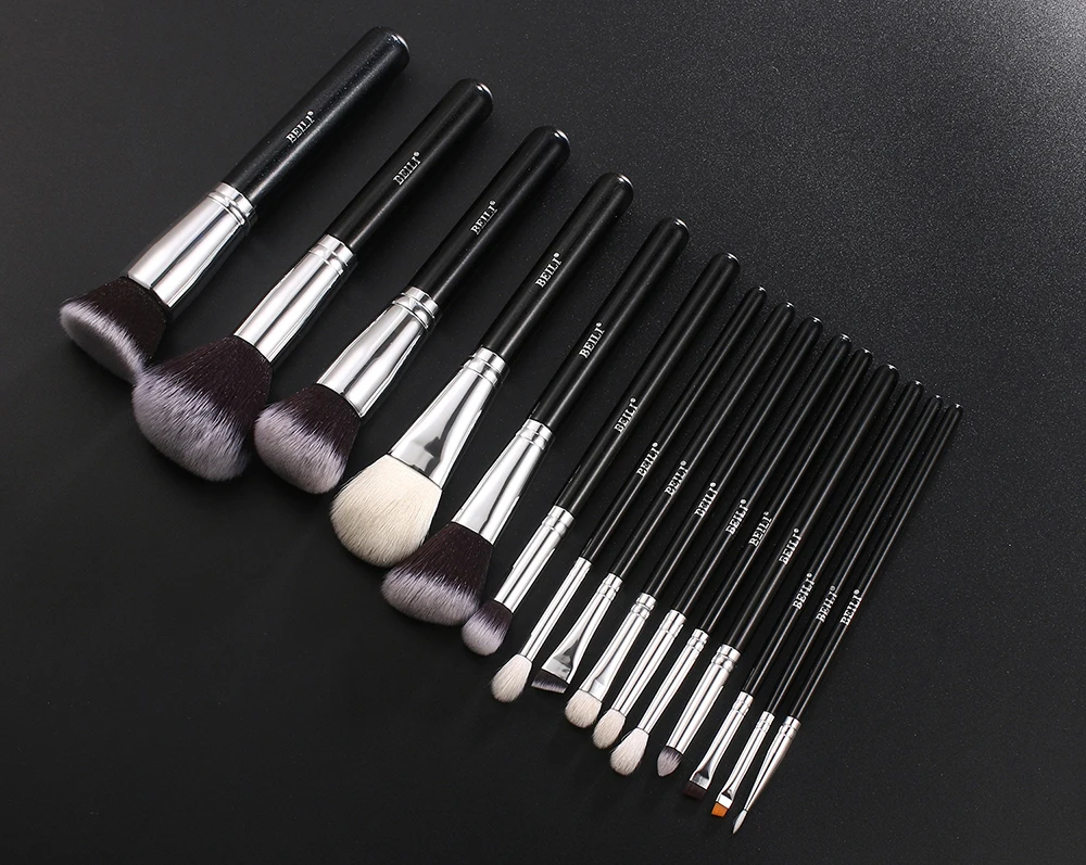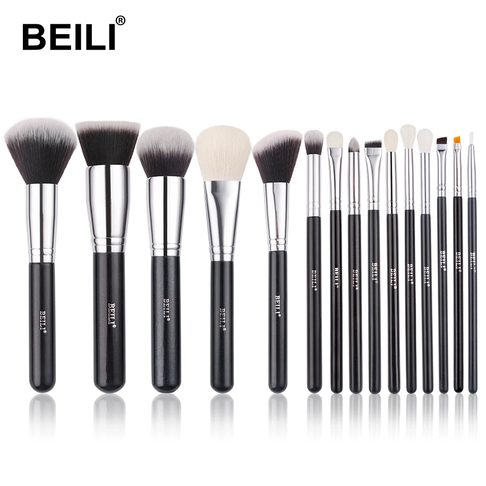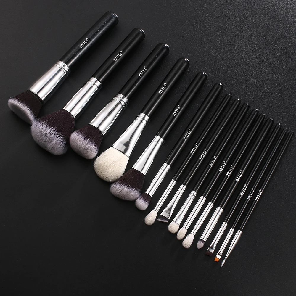 BEILI Black 15 шт. кисти для макияжа Профессиональная Натуральная козья Коза синтетические волосы основа пудра, кисть для теней на веки инструменты для макияжа