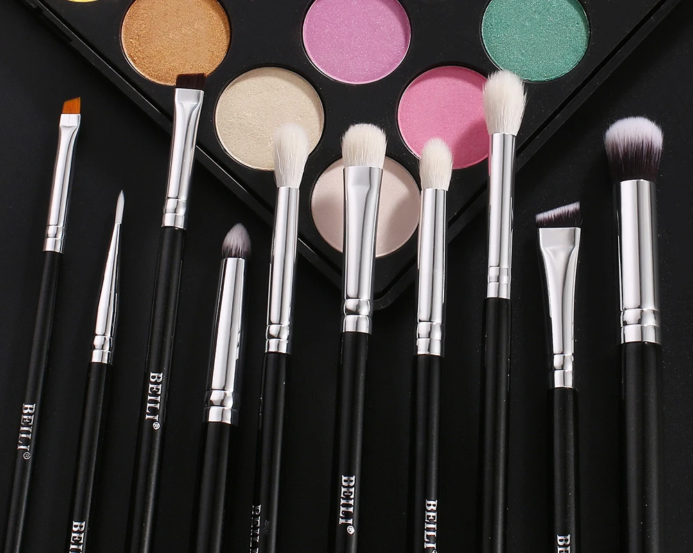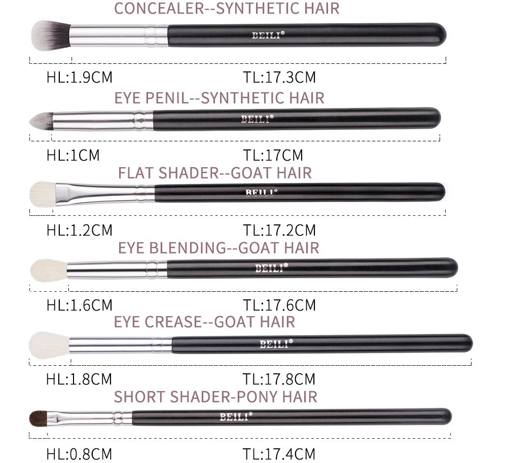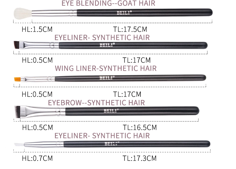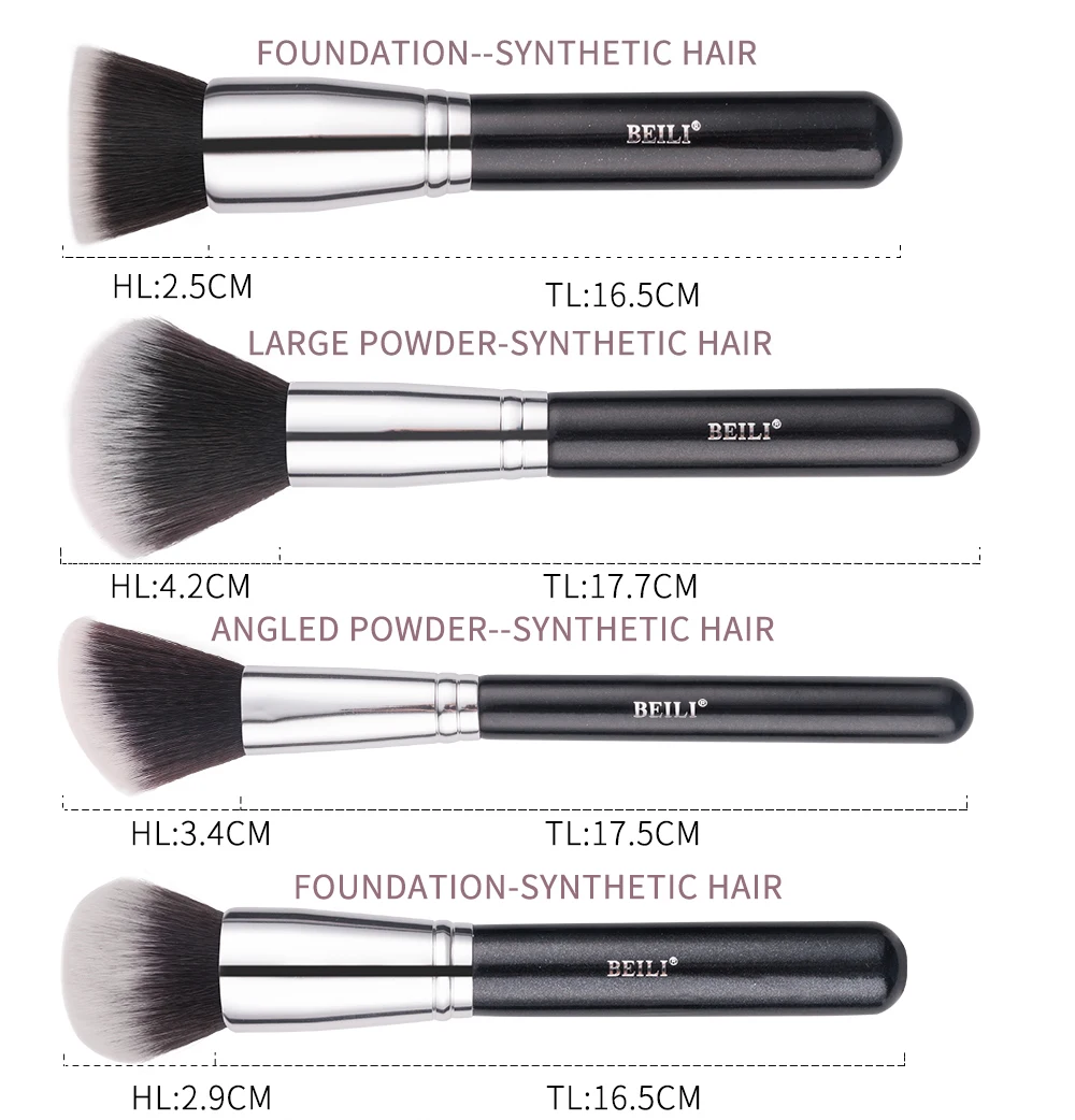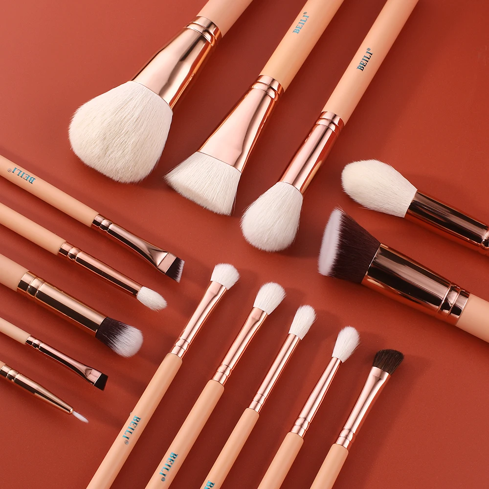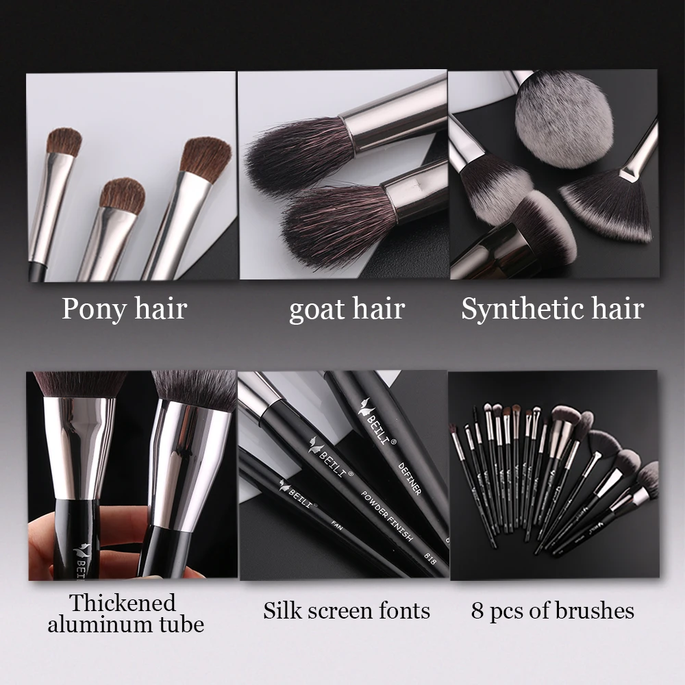 BEILI Black 15 шт. кисти для макияжа Профессиональная Натуральная козья Коза синтетические волосы основа пудра, кисть для теней на веки инструменты для макияжа
