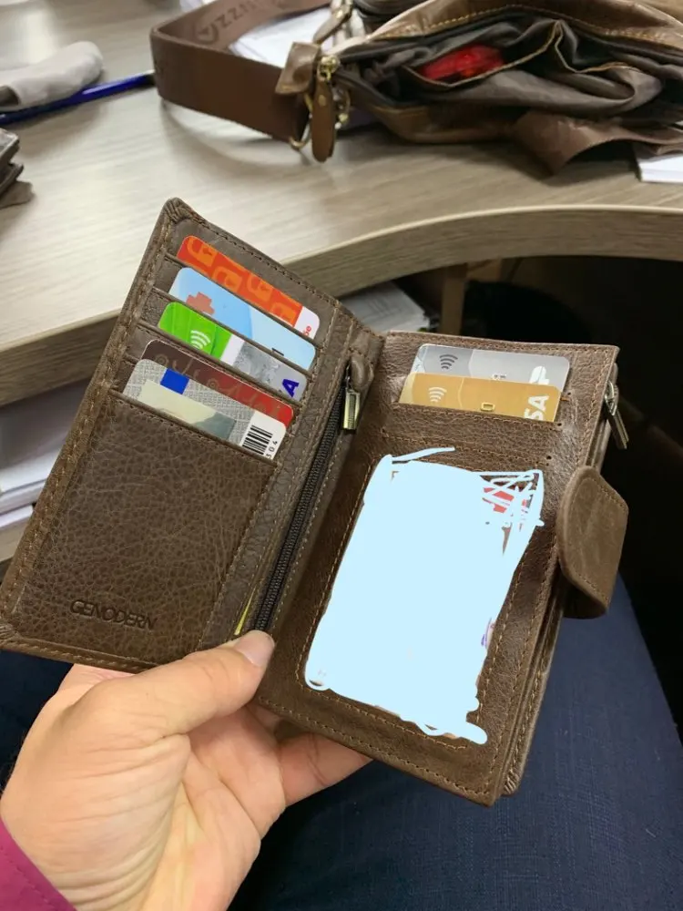 Прикольный кошелёк, до Кемерово долетел за 9 дней , забирал в автомате пикпойнт) единственное цвет намного светлее чем на картинке) ну и хотелось бы по больше отсеков разных по факту их не много. Запах есть и очень сильный, кожаная бирочка кардинально отличается от кожи кошелька, поэтому я думаю что это экокожа) ну и не теряйте паспорт он иногда оттуда выпадает!!!
