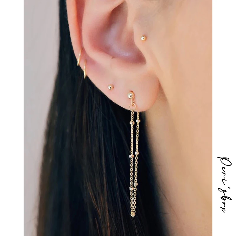 LWONG 4 мм круглые крошечные серьги с бусинами и цепочкой для женщин, минималистичные тонкие серьги-цепочки, новинка 2018, простые серьги-манжеты