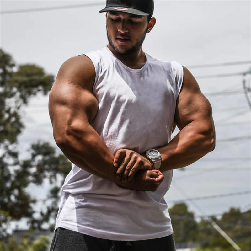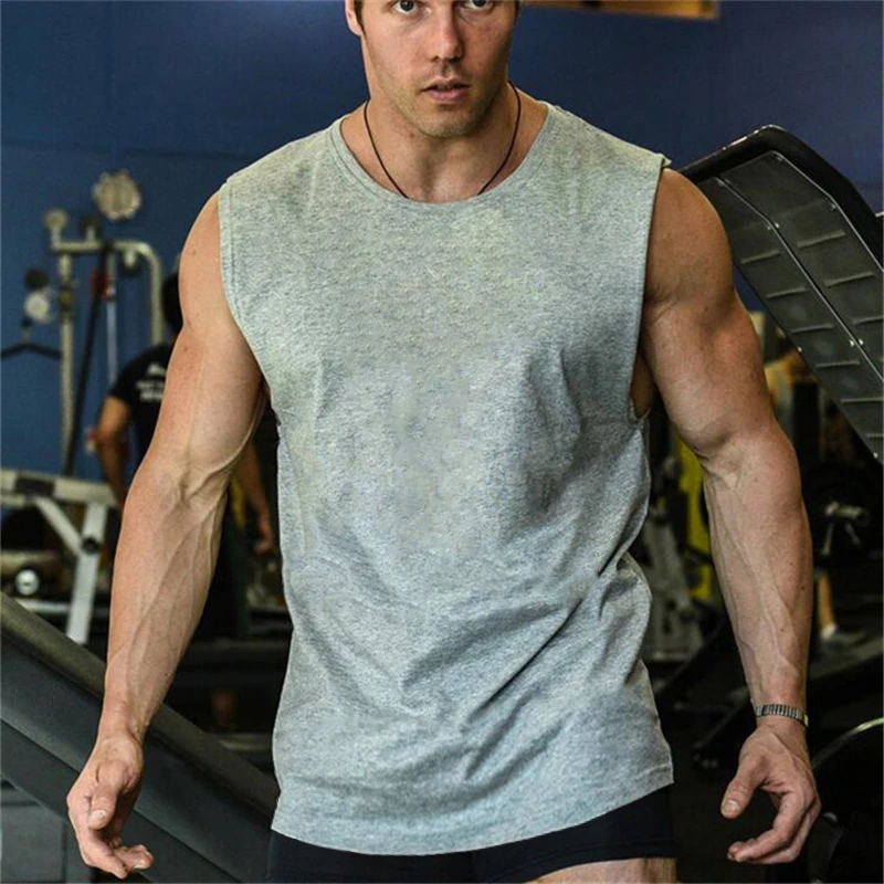 Майка мужская хлопковая облегающая, брендовая простая одежда, топ для спортзала, майка без рукавов для бодибилдинга, фитнеса, лето