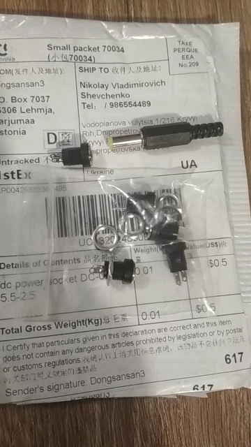 Страна: UA Color: DC 5.5x2.5mm Pins: 5pcs Доставка: Saver Shipping 03.02.2021