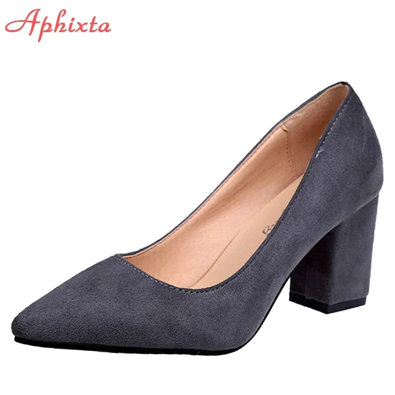 Туфли-лодочки женские из флока на квадратном каблуке, с острым носком, большие вечерние 47, 48, 50