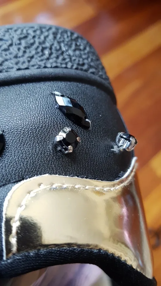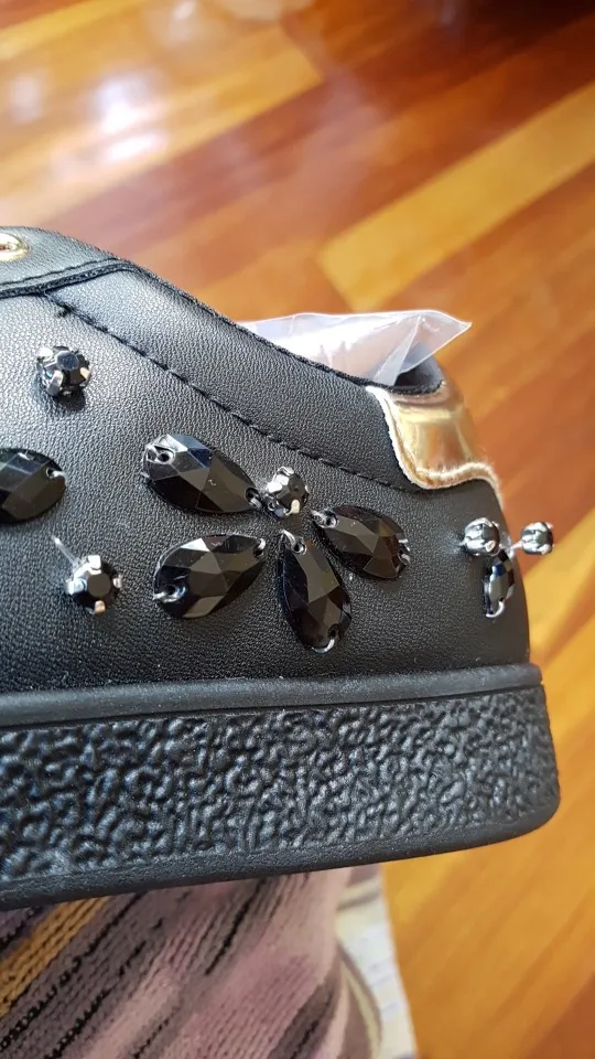 Это та же проблема в обеих туфлях, в одном и том же месте. Украшения плохо сшиты и не висят, я не знаю, могу ли я их удалить, потому что я вижу пятно внизу, и я думаю, что q клей. Мне очень нравится дизайн, и я надеюсь, что вы расскажите мне, как это исправить.