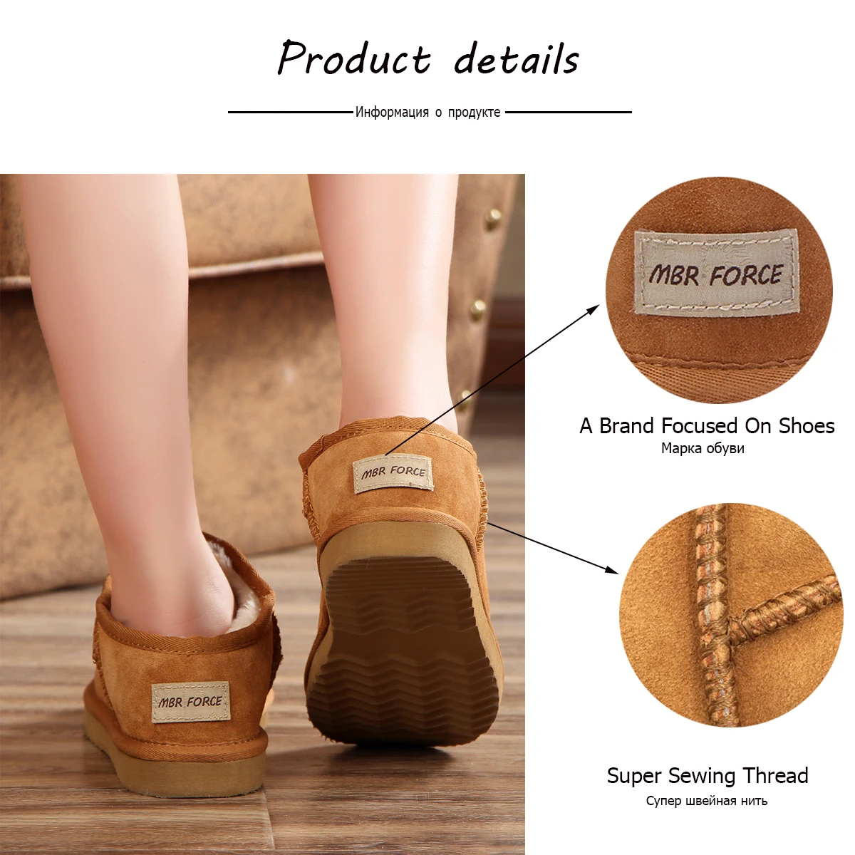 MBR FORCEженские зимние ботинки в классическом австралийском стиле; Зимние теплые кожаные ботильоны высокого качества на плоской подошве; Большие размеры