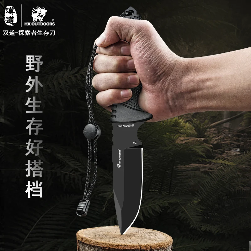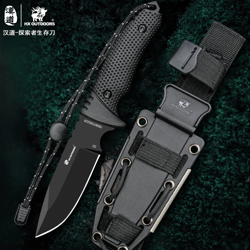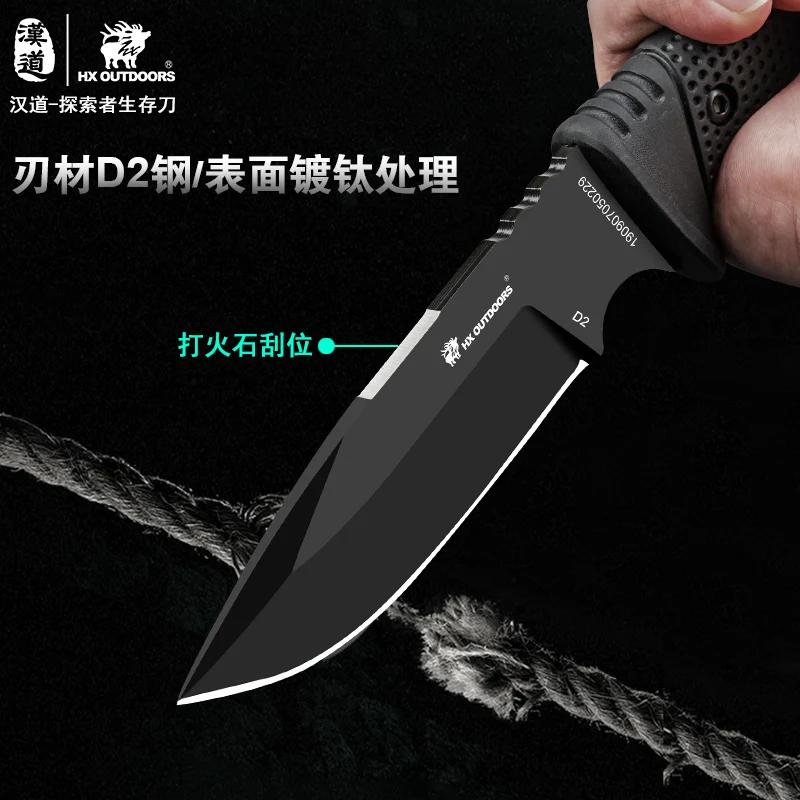 Охотничий нож HX для выживания на природе D2, стальное фиксированное лезвие, прямые ножи для кемпинга, многофункциональные тактические ручные инструменты с резиновой рукояткой