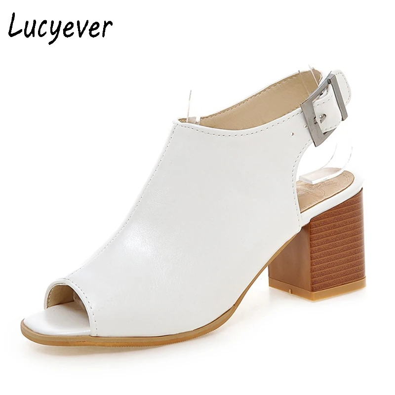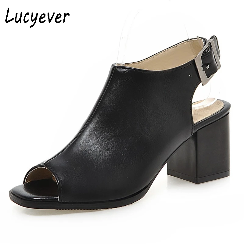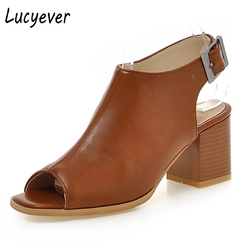 Lucyever 2021 летние классические женские сандалии из мягкой кожи, лаконичные однотонные ботинки с открытым носком и пряжкой, женская обувь на толстом каблуке